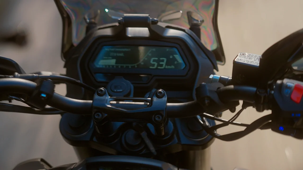 La Dominar 400 no presume de fuegos artificiales, pero sí de tecnología práctica. Incorpora dos pantallas digitales LCD: