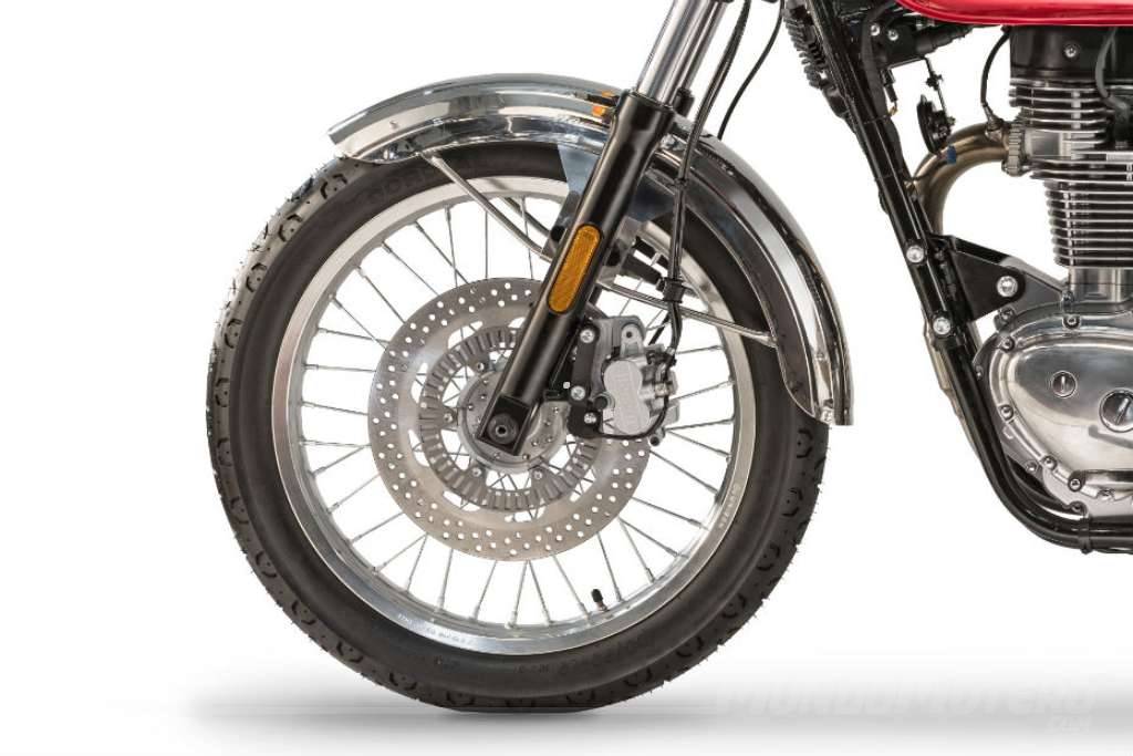 Esta nueva moto de estilo clásico de Benelli está construida sobre un bastidor de acero de doble cuna, y monta una horquilla telescópica frontal con barras de 41 mm, y amortiguadores dobles en la parte trasera. La suspensión delantera ofrece un recorrido de 110 mm, mientras que la suspensión trasera tiene un recorrido de 65 mm.