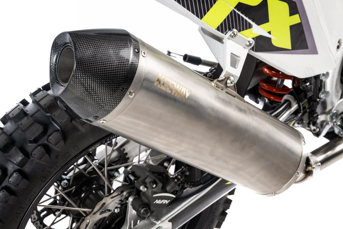 Uno de los elementos más destacados de la TX450R es su avanzado sistema de suspensión, que está diseñado para absorber las irregularidades de los terrenos más exigentes. En la parte delantera Keeway la ha dotado con una horquilla telescópica invertida de 48 mm de la marca FASTACE, que ofrece un recorrido de 280 mm mientras que en la parte trasera, el amortiguador Pro-link, ajustable en precarga, proporciona un recorrido de 90 mm, contribuyendo a la estabilidad, incluso en terrenos exigentes.