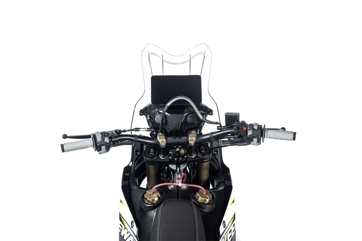 El chasis de acero de doble brazo asegura la durabilidad, mientras que las llantas de radios de 21 pulgadas en la parte delantera y 18 pulgadas en la trasera dejan a las claras su orientación para uso extremo offroad Rally. Gracias a su depósito de combustible de 26 litros, la TX450R está preparada para largos recorridos, aumentando así su autonomía y adaptabilidad a largas jornadas de rally.