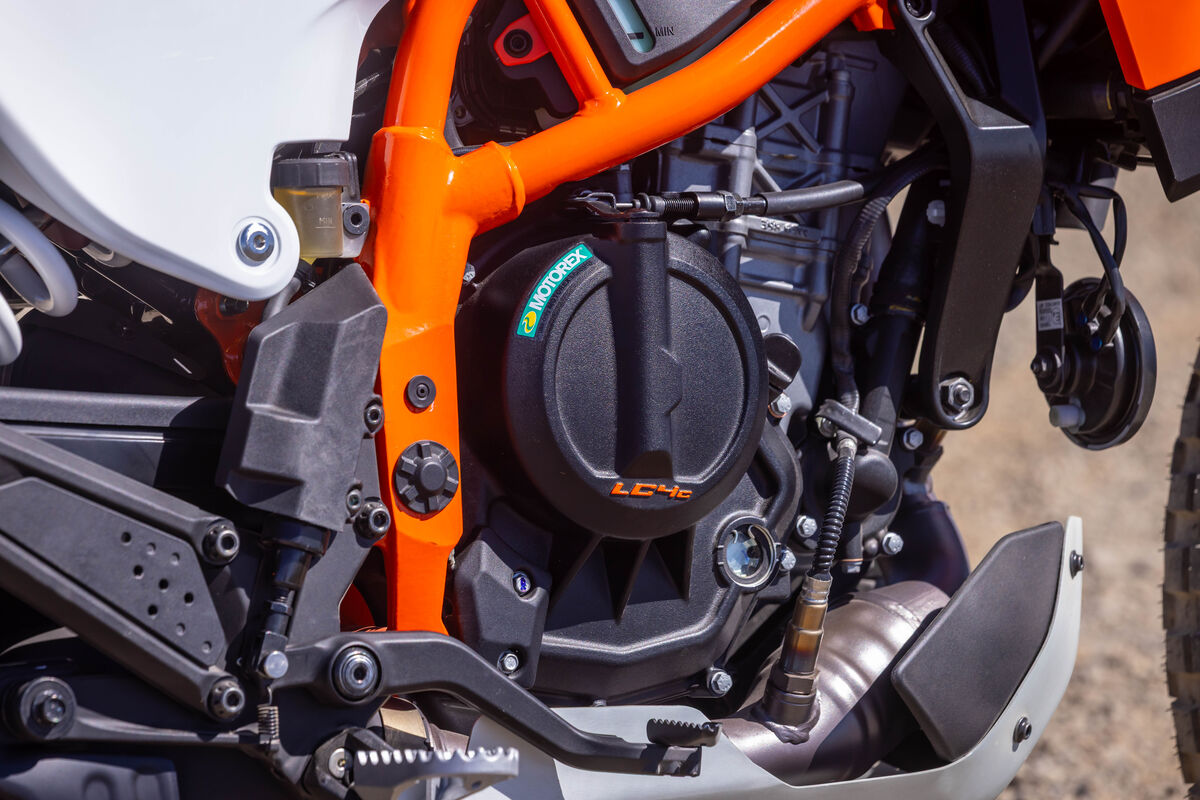 Bajo el chasis de esta moto de KTM encontramos un monocilíndrico de 4 tiempos de 398,7 cc, con 45 CV y 39 Nm de par, asociado a un cambio de 6 marchas. Sobre el terreno, estas cifras se traducen en un empuje lleno a medio régimen, ideal para enlazar curvas en carreteras estrechas y, sobre todo, para traccionar con finura en pistas sin exigir un nivel de pilotaje extremo.