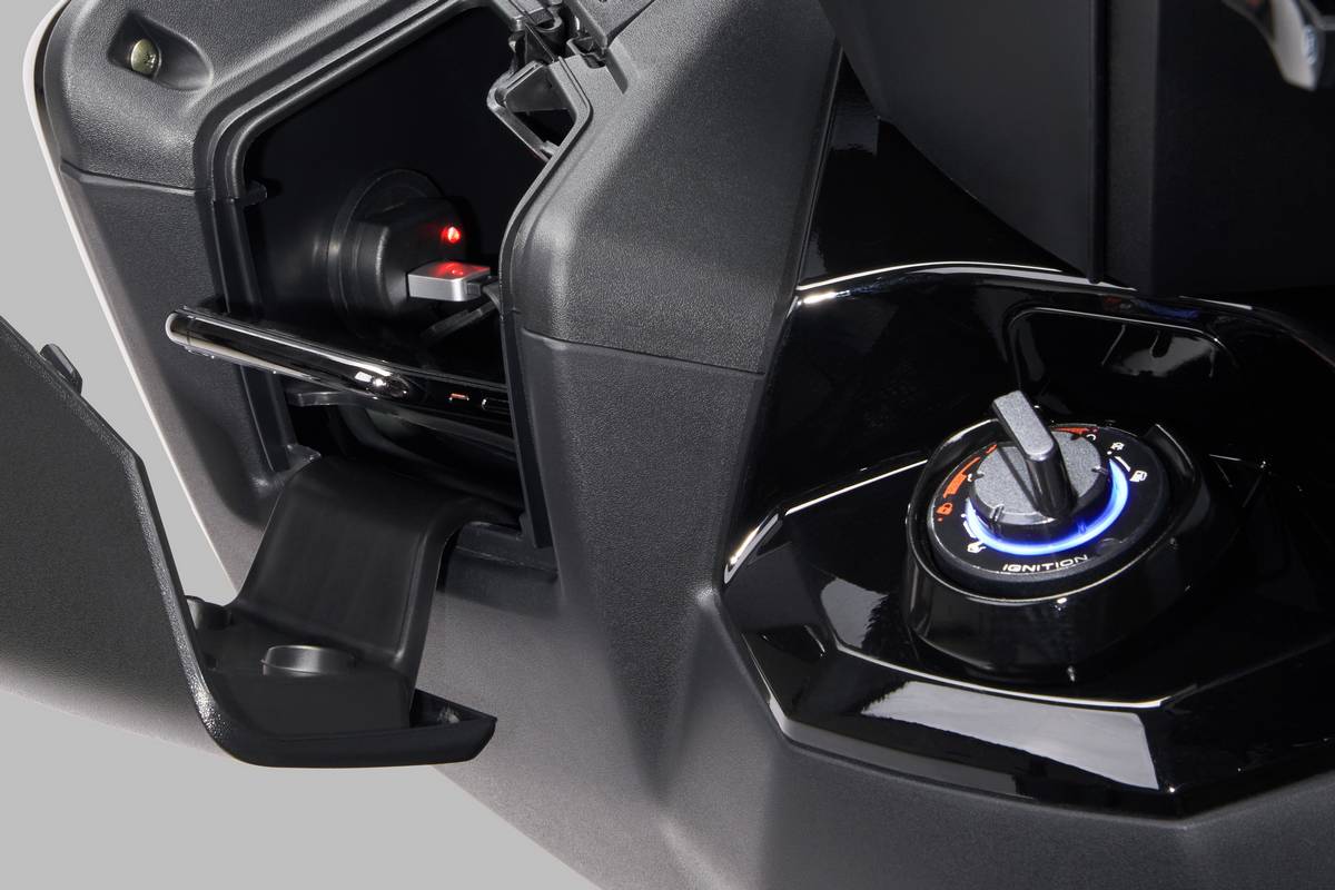 El nuevo crossover DTX 125 llega de cara a este año con un renovado y actualizado con un parte delantera de corte más deportiva pese a ser un claro scooter GT. En el apartado de la capacidad de carga, este nuevo modelo de scooter GT de KYMCO ofrece en la parte delantera 2 guanteras de fácil acceso, con una de ellas dotada de toma auxiliar para carga de dispositivos móviles.