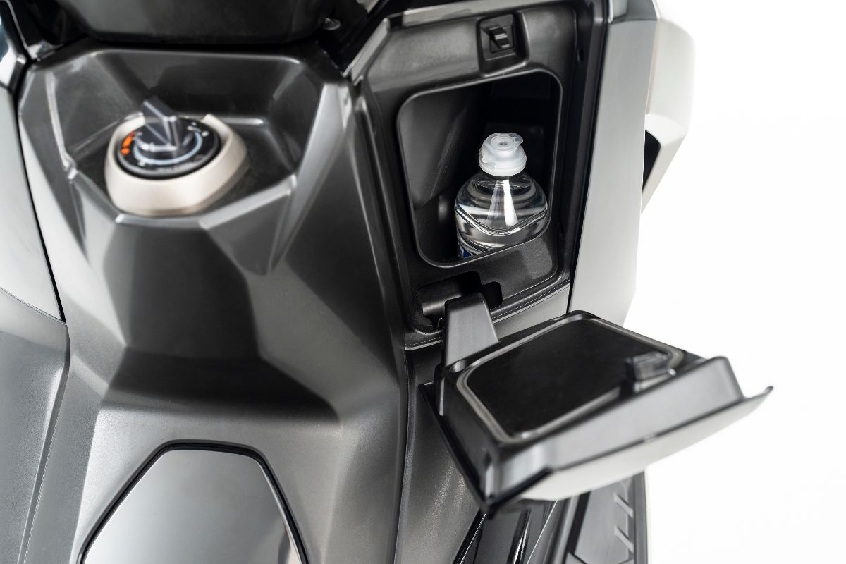 El nuevo Super Dink GT 125 llega de cara a este año con un nuevo diseño, completamente actualizado y donde destaca el frontal más afilado. Por lo que respecta a la capacidad de carga de este scooter GT de Kymco, bajo el asiento puede albergar dos cascos integrales, cuenta con luz de cortesía y sistema de sujeción. Además, dispone tras el escudo frontal de dos guanteras, una de ellas con toma de corriente USB de 5 V.