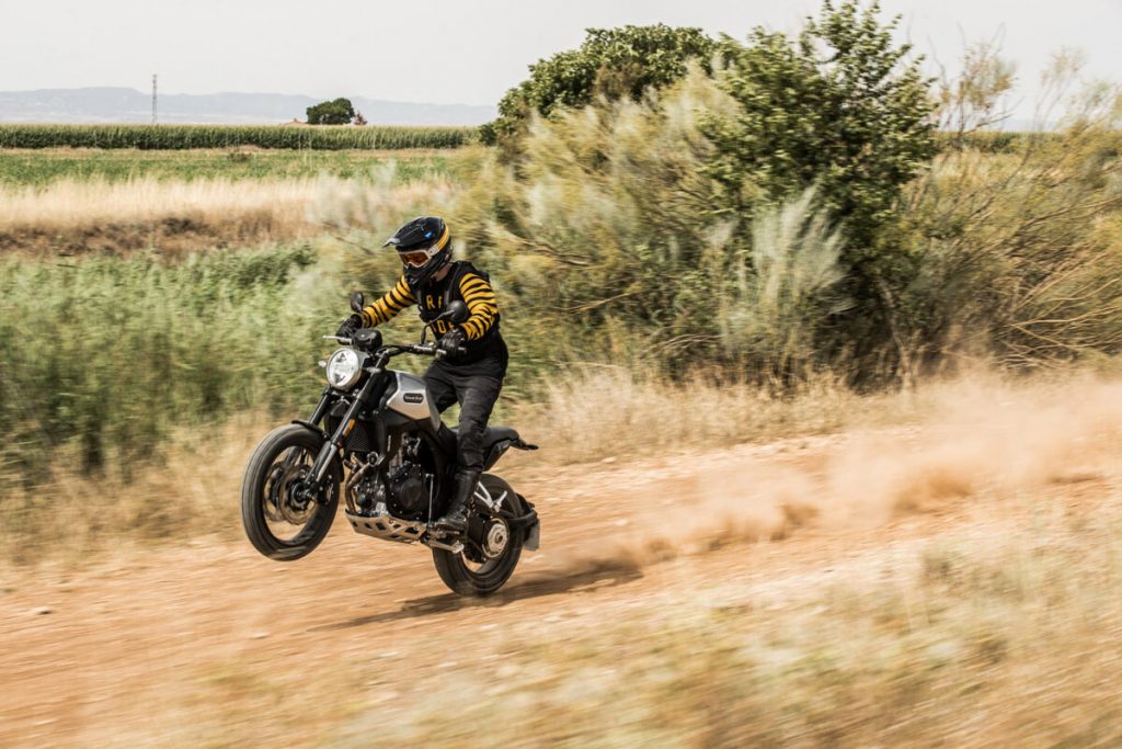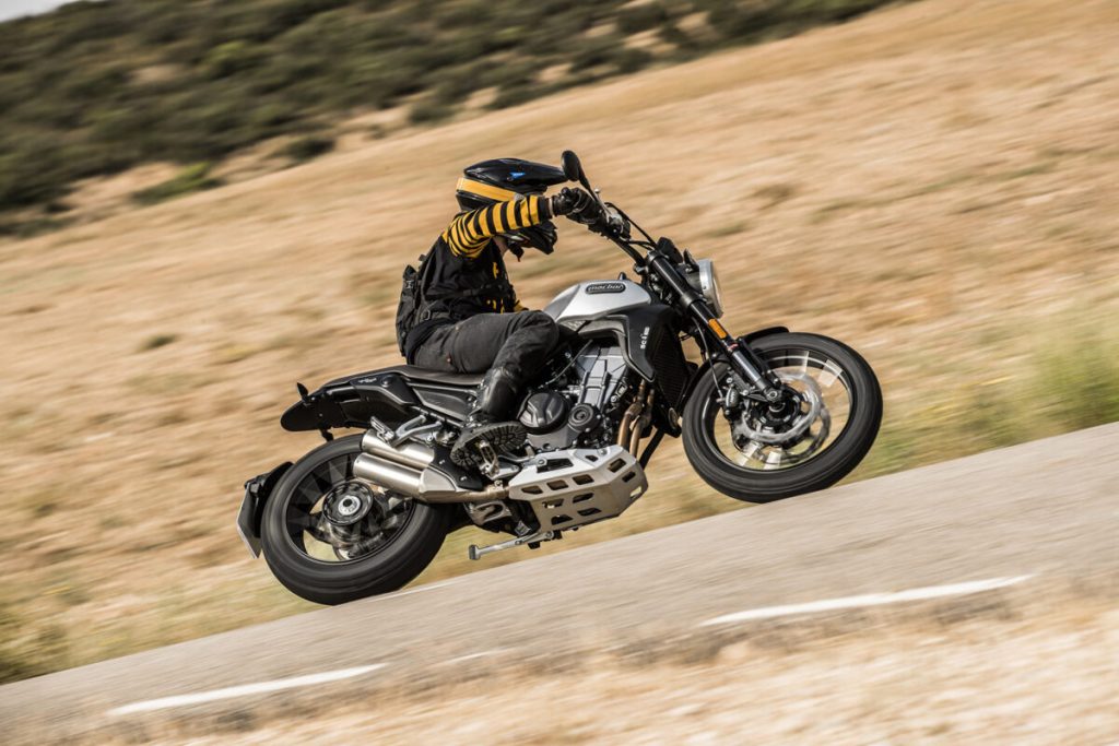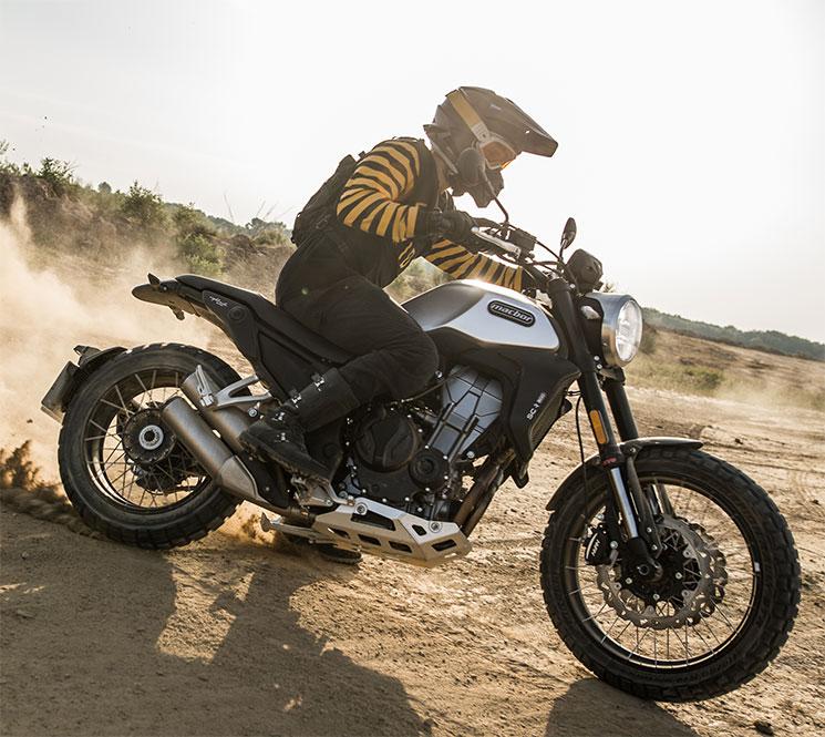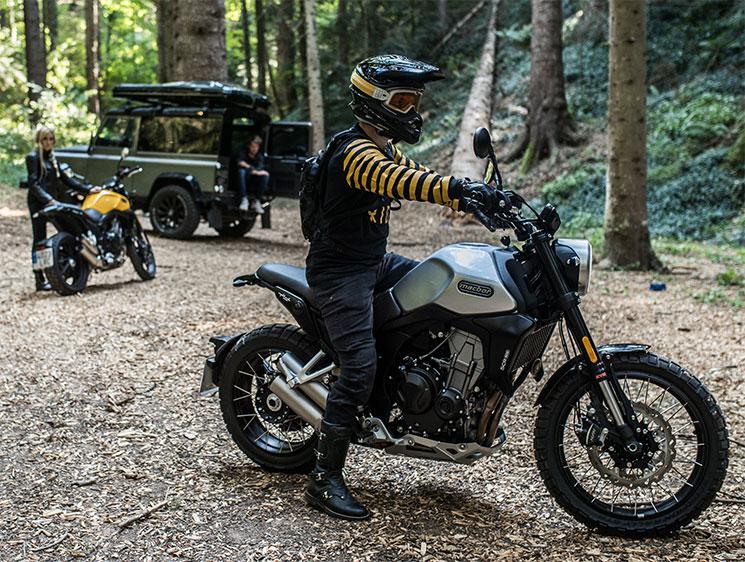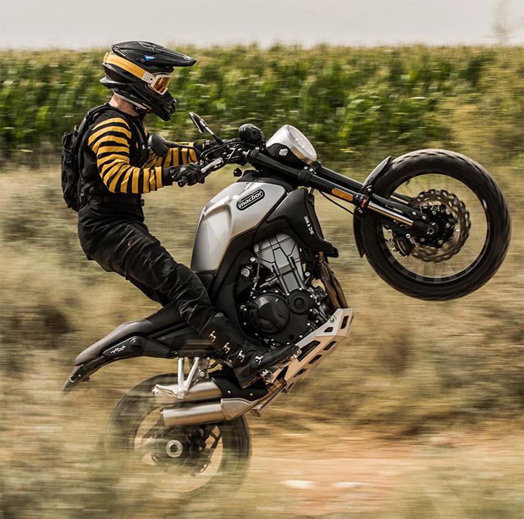 Este modelo scrambler destaca el doble tubo de escape en el lateral inferior derecho, el basculante monobrazo, los frenos de disco lobulados hasta el minimalista portamatrículas de estilo flotante sobre la rueda trasera. Un propulsor bicilíndrico de 471 cc multiválvula con inyección electrónica que desarrolla 47 CV a 8.500 rpm, que como buen bicilíndrico sobresale por su rápida capacidad de reacción, linealidad en su respuesta y bajo nivel de vibraciones.