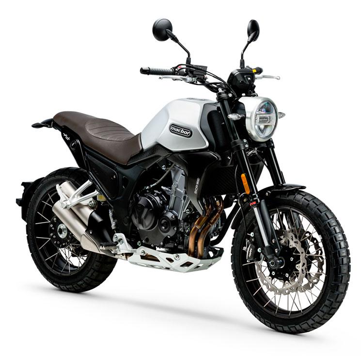 La MACBOR Eight Mile 500 SCR se coloca en uno de los segmentos con más auge y más competidos del mercado, ya que hay una amplia oferta tanto de modelos naked como de modelos de motos scrambler A2. El término scrambler (mezcla) se empieza a utilizar en UK en la década de los 50 para señalar a un estilo de motos que mezclan las cualidades de una moto de carretera con las de una moto de campo. Con una posición de conducción más erguida, asiento plano, horquillas de mayor recorrido, escapes sobre elevados y neumáticos mixtos. Aunque esto pueda parecerse a una moto trail, y en sus origines sí que tenían mucho en común, las scrambler actuales están más cerca a una moto naked, pero con la ventaja de poder desenvolverse con soltura en off-road y seguir manteniendo el encanto de esas polivalentes motos de la época.