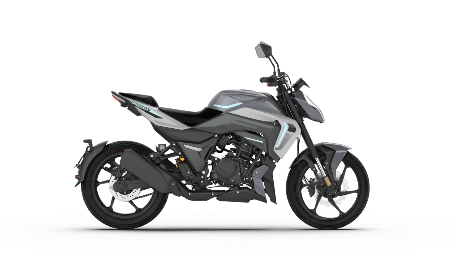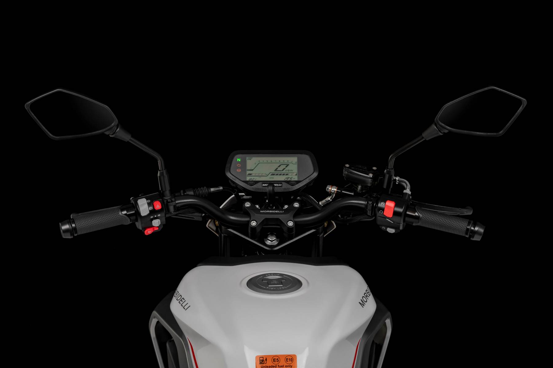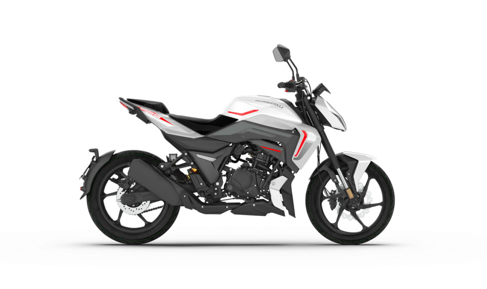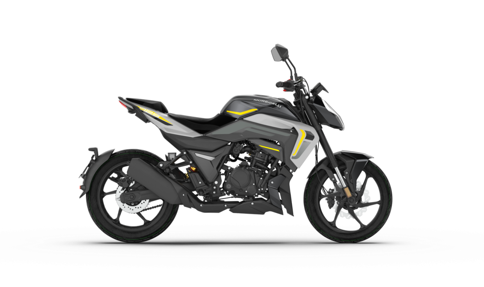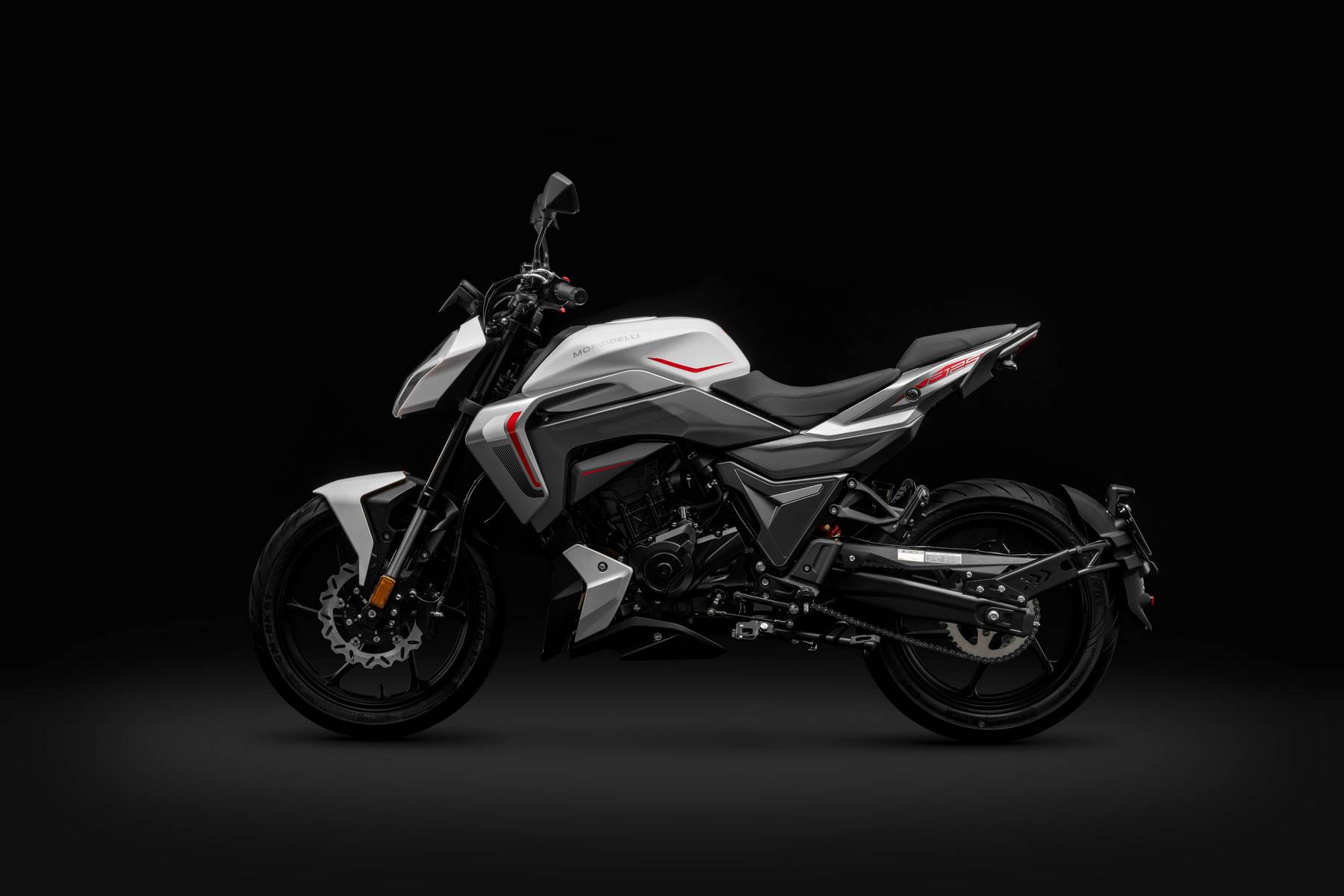 El equipo de frenos está asistido por ABS, una garantía en mojado o sobre firmes urbanos de agarre variable. Morbidelli destaca un disco delantero de gran diámetro con pinza de dos pistones y un disco trasero que aporta control en maniobras y apoyo en trazados revirados. La calibración, combinada con el peso contenido del conjunto, ofrece detenciones seguras y previsibles, con palanca y pedal de recorrido claro. Seguridad sin complicaciones: justo lo que se pide a una moto naked 125 polivalente.