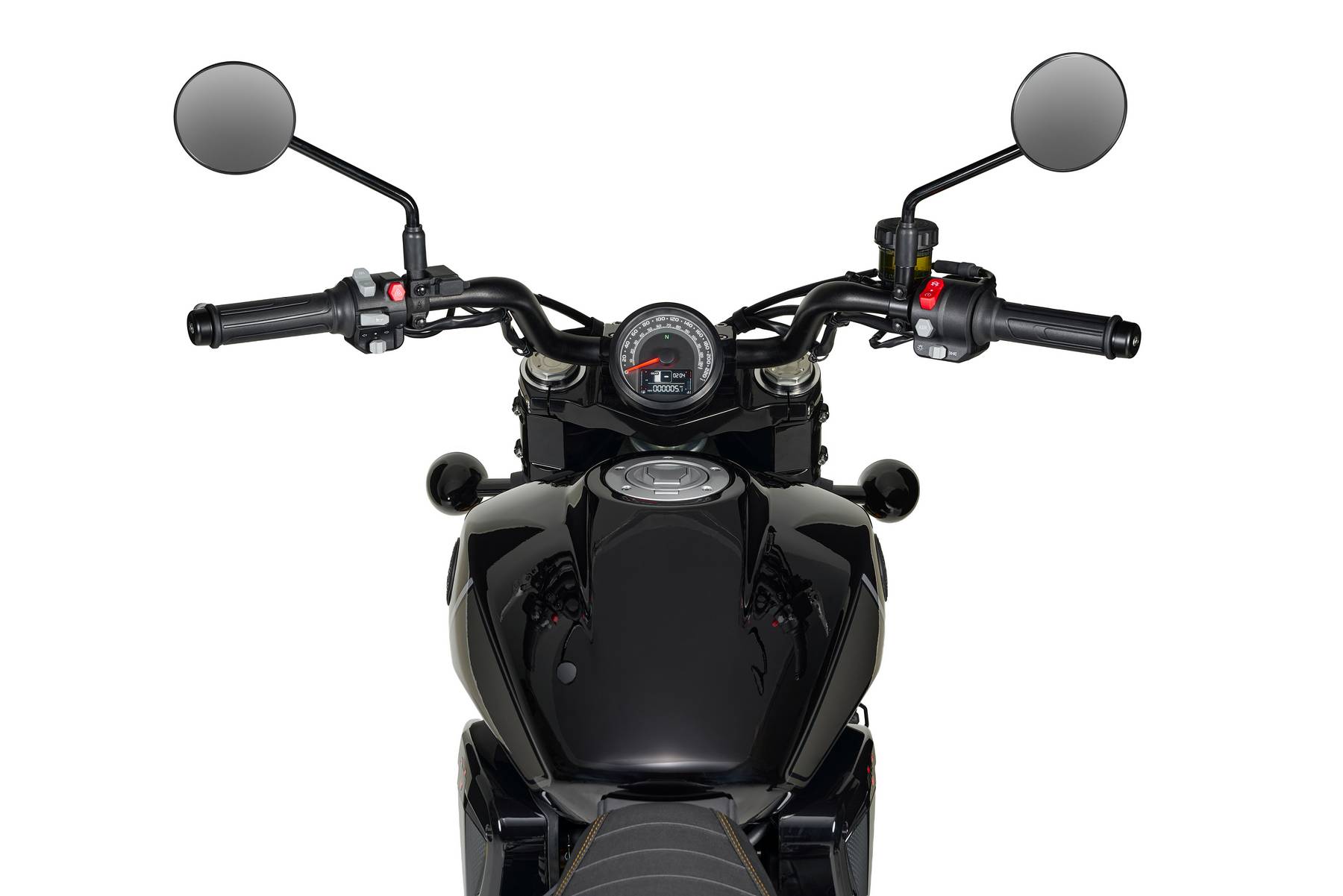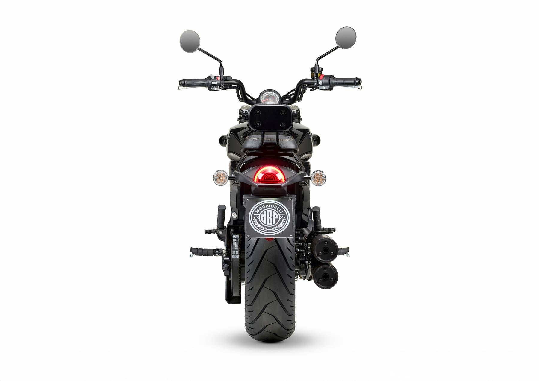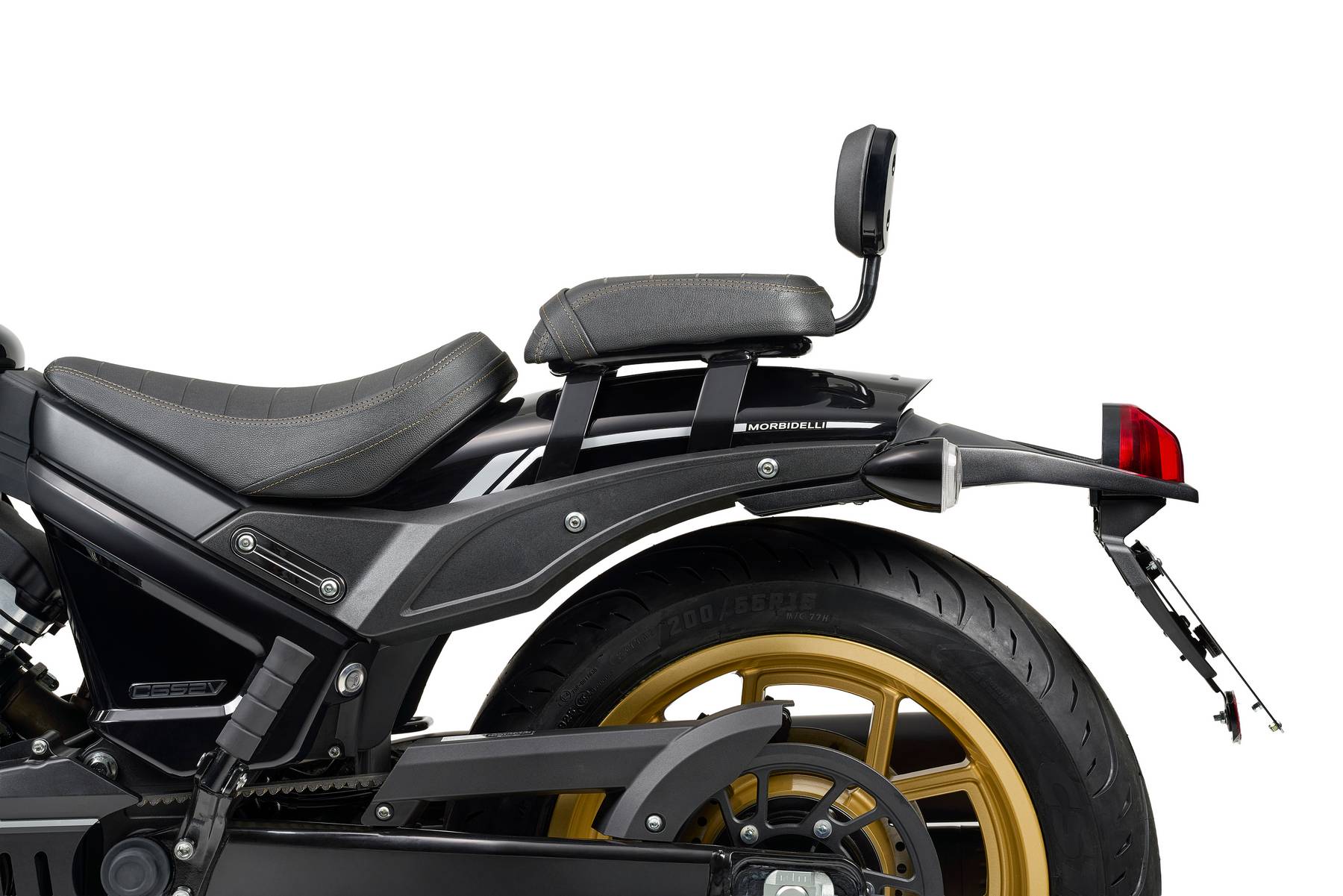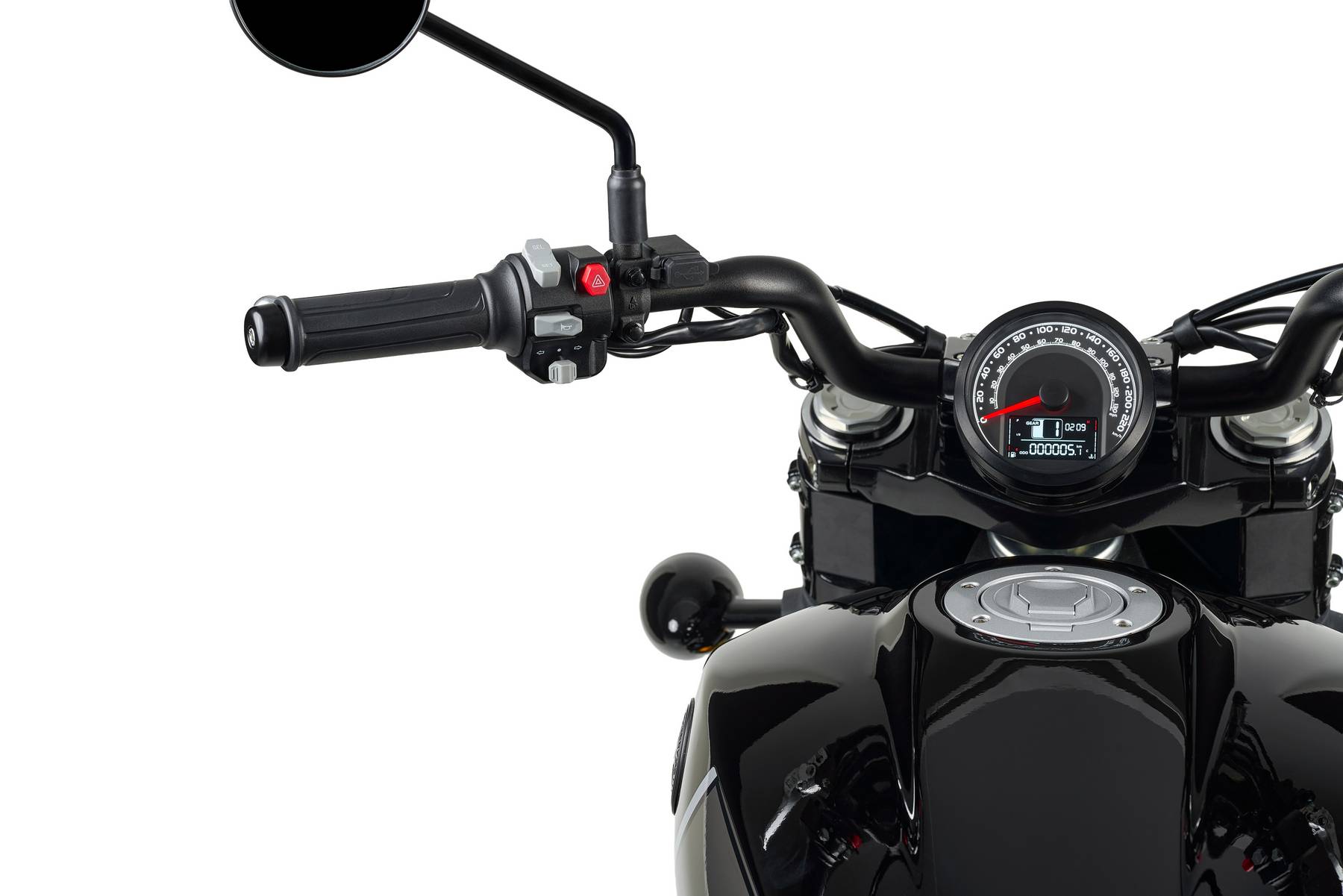 Morbidelli ha cuidado la interacción con el piloto con un cuadro singular: tacómetro analógico de barrido que integra una pantalla digital central, una solución que mezcla tradición y lectura clara de la información relevante. La iluminación es full LED y se añade toma USB-A para dispositivos. El depósito de 18,5 litros amplía la autonomía, mientras que el asiento de pasajero desmontable permite pasar del formato biplaza a una estética “bobber” en segundos, reforzando la versatilidad estética y funcional del modelo. Son decisiones de producto orientadas al día a día, sin perder de vista el guiño al custom clásico.