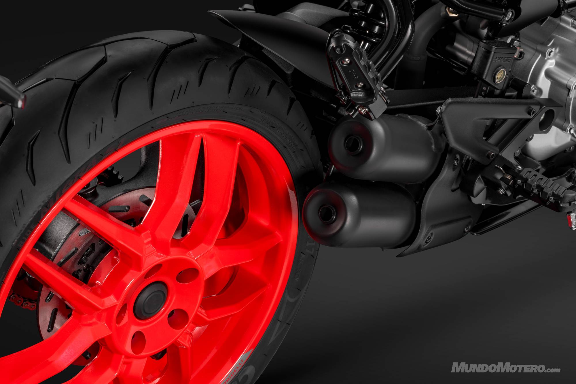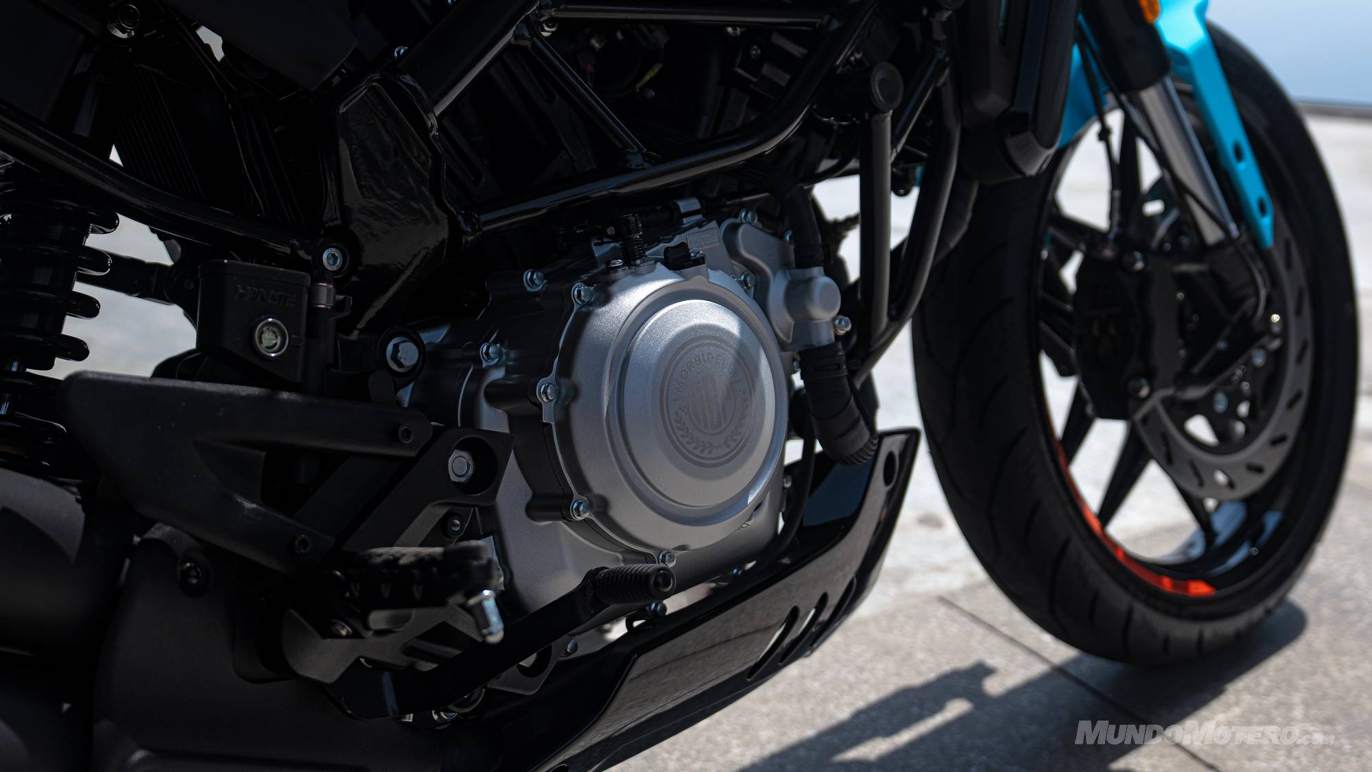 Desde una perspectiva técnica, el chasis multitubular de acero tipo trellis no solo cumple una función estructural de rigidez probada, sino que se integra en una estética limpia y técnica. No obstante, el componente que acapara todas las miradas es su basculante monobrazo de aluminio. Se trata de una solución técnica de gran calado, inusual en este segmento, que no solo reduce las masas no suspendidas, sino que otorga a la motocicleta una prestancia visual propia de segmentos superiores.