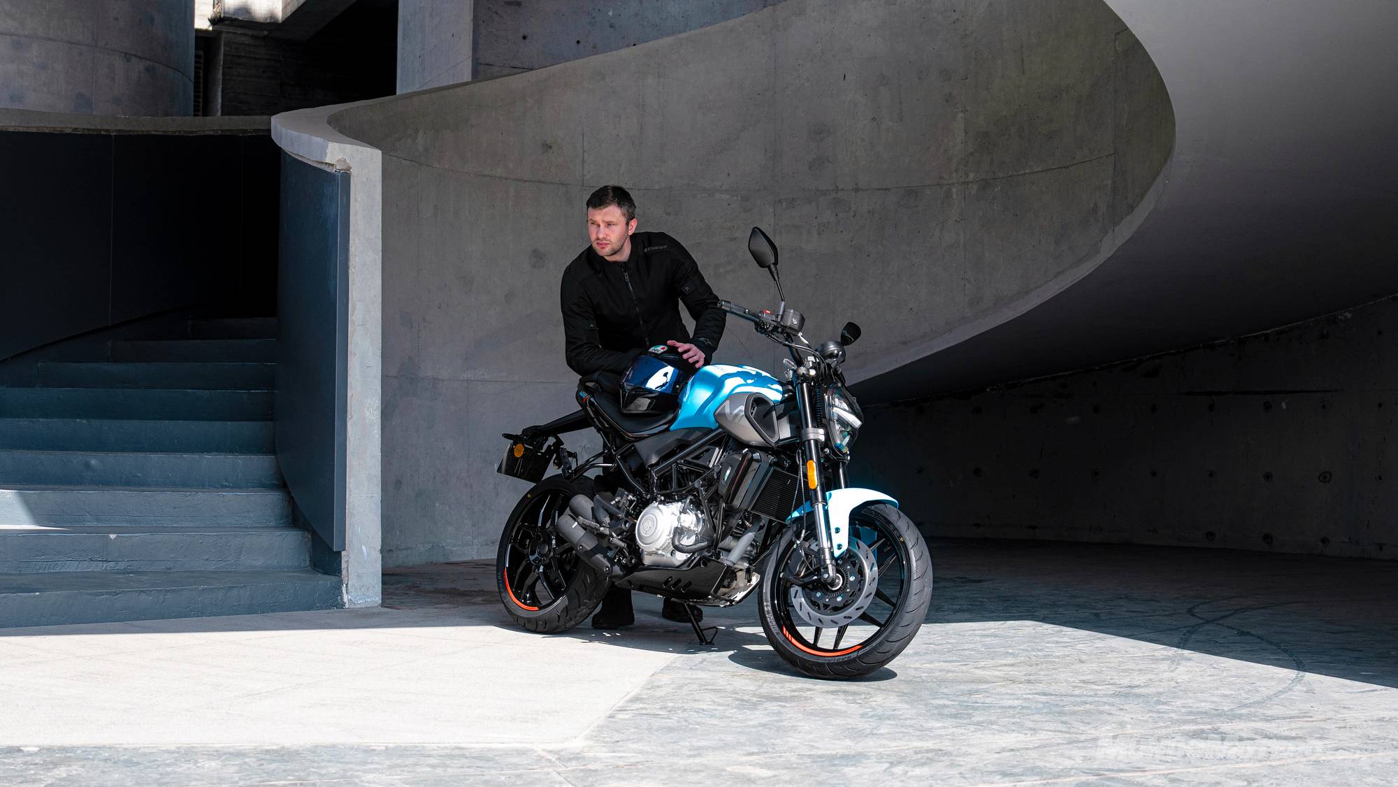 El equipo de suspensiones, con una horquilla invertida de 37 mm en el eje delantero y un monoamortiguador ajustable en precarga en el posterior, sugiere un compromiso equilibrado entre el confort necesario para la ciudad y la firmeza requerida en trazados interurbanos.