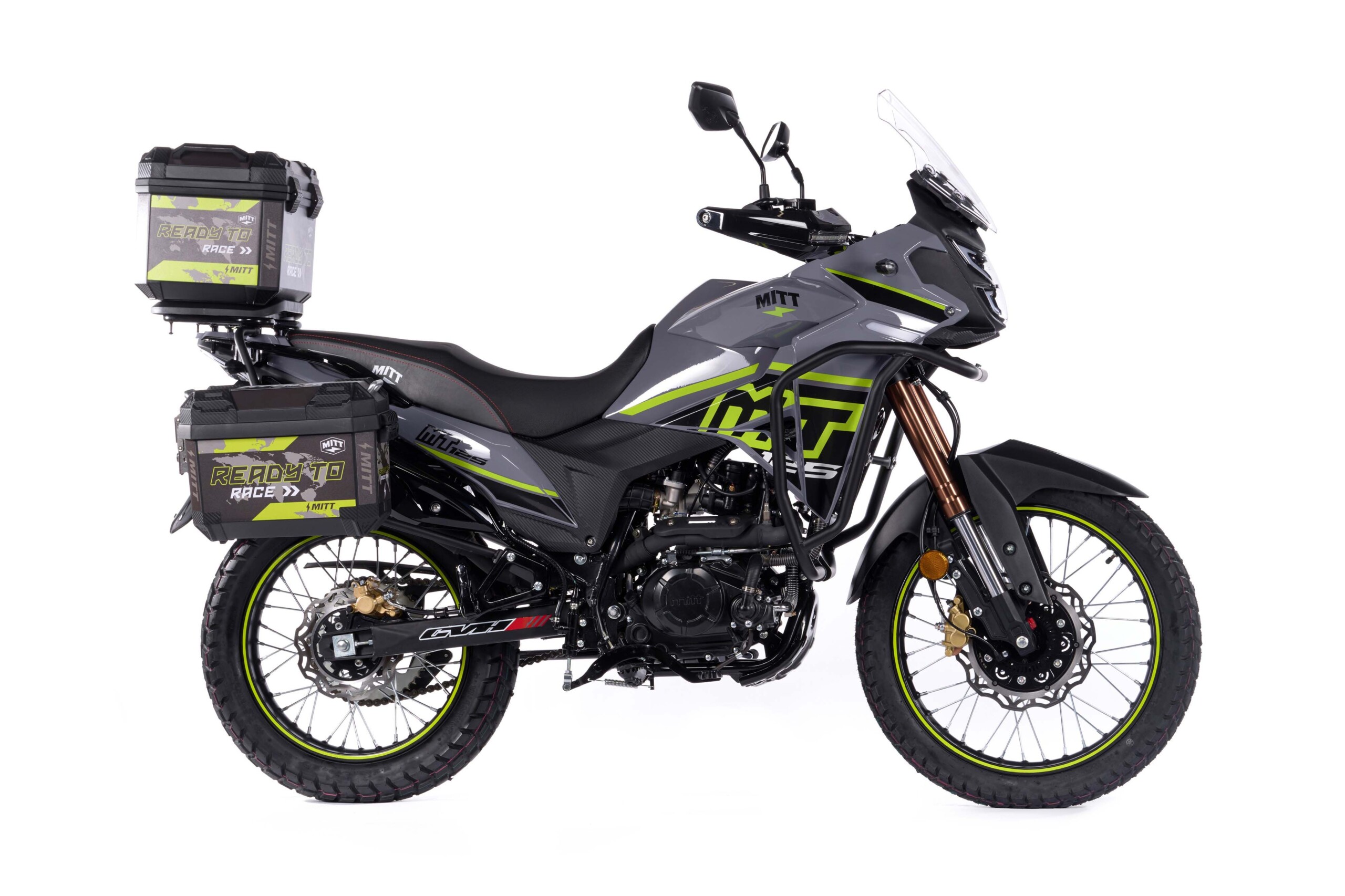 Uno de los puntos más atractivos de esta moto MITT es su planteamiento estético. La moto transmite desde el primer vistazo una clara vocación trail, con una carrocería de líneas robustas y una presencia que la acerca visualmente a cilindradas superiores. No es una 125 urbana disfrazada: su planteamiento visual y funcional deja claro que está enfocada a quienes buscan una moto polivalente y con cierta capacidad viajera.