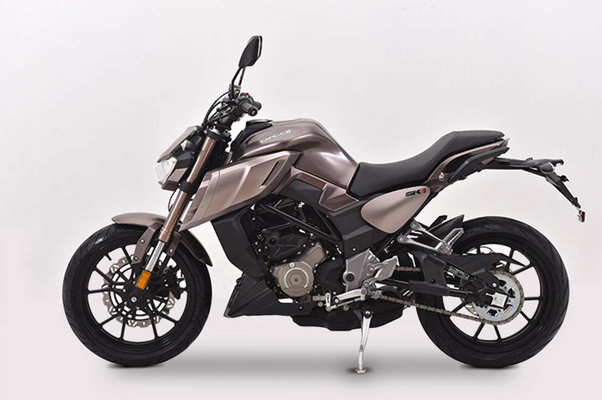 La nueva Orcal SK03 300 pesa 163kg. Su asiento se sitúa a 810mm del suelo y la longitud total de la naked se extiende a 2050mm de longitud, 775mm de anchura y 1127 de altura. Por su parte, la distancia entre ejes es de 1410mm.