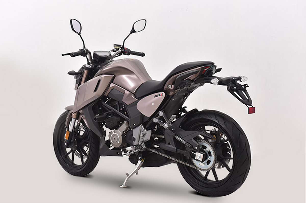 La SK03 consigue una potencia máxima de 27 CV (20,5 kW) a 8.500rpm. Por su parte, el par motor más alto que puede alcanzar son 26,5 Nm a 7.000 rpm. La caja de cambios es de 6 velocidades y viene acompañada de un embrague bañado en aceite. Finalmente, esta potencia se transmite a la rueda trasera por cadena.