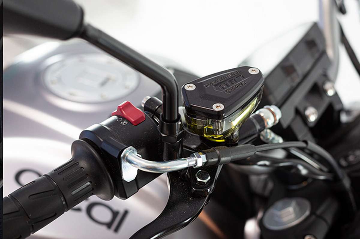 La parte ciclo de moto naked A2 se desarrolla sobre un chasis en tubos de acero. El sistema de suspensiones lo equipa una horquilla invertida de 50mm en la parte delantera, mientras que las fuerzas de la parte trasera las soporta un monoamortiguador hidráulico regulable.
