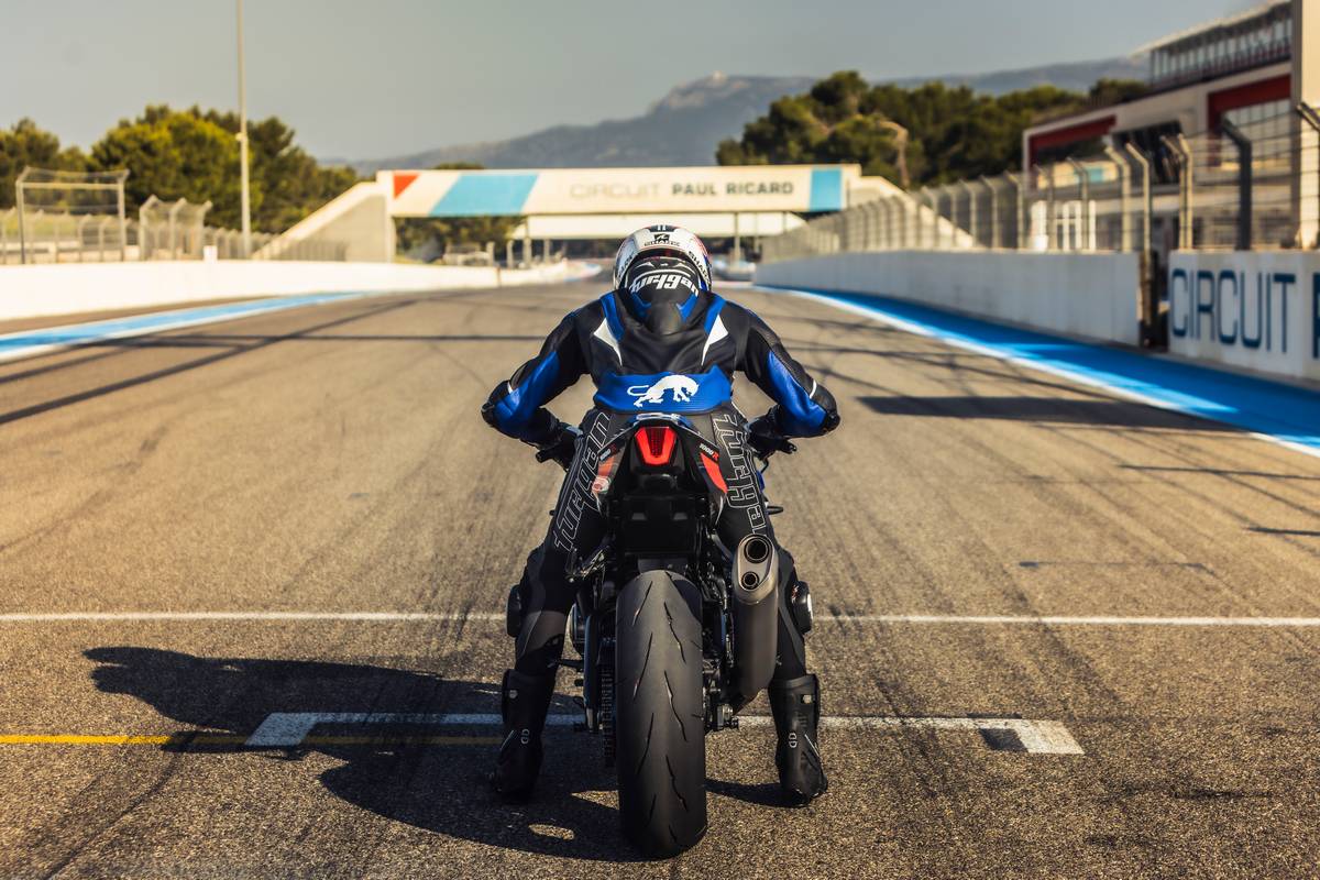 El conjunto se completa con un basculante reforzado, subchasis de aluminio ligero y amortiguador de dirección con ajuste electrónico, lo que permite una conducción estable incluso a ritmo de circuito.