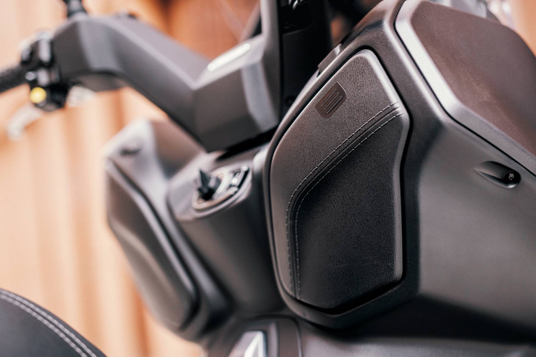 Fiel a su ADN turístico, el MAXSYM GT apuesta por una ergonomía relajada, con asiento a 780 mm que facilita el apoyo en parado y una postura natural tras el amplio parabrisas ajustable manualmente en dos posiciones. El carenado integra ópticas Full LED delante y detrás, que además de reforzar la visibilidad aportan una imagen moderna y elegante. La capacidad de carga es otro argumento de peso: 45 litros bajo el asiento, con espacio para dos cascos (integral + jet), iluminación de cortesía y apertura frontal para un acceso más cómodo. Se suma un doble guantera delantera, con toma QC 3.0 en una de ellas para alimentar o cargar dispositivos. Detalles que en el uso cotidiano marcan la diferencia.