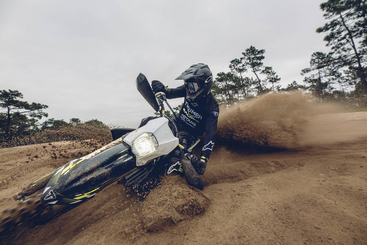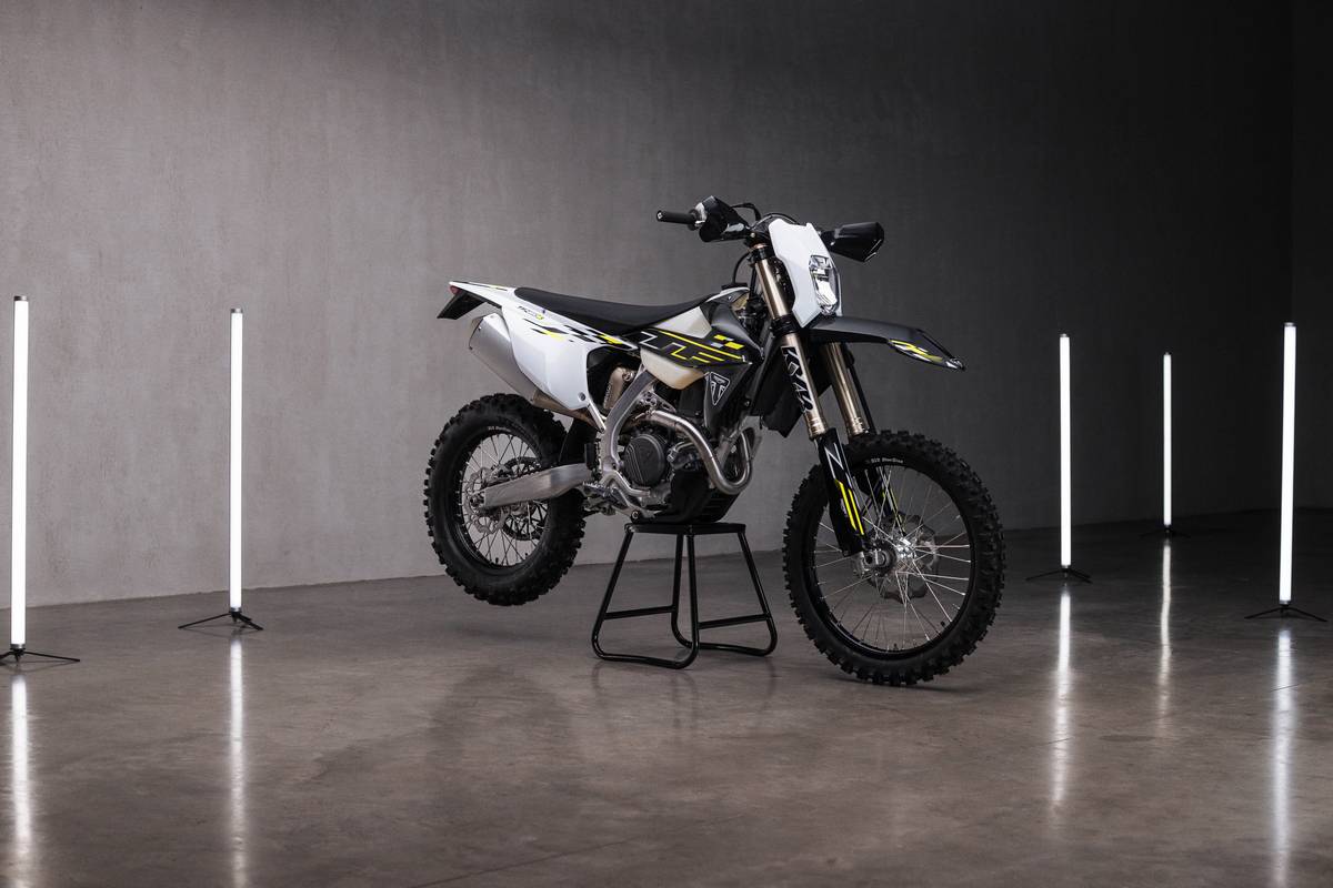 La TF 450-E presenta una estética agresiva e inspirada en la competición, con una carrocería minimalista y ligera que maximiza la eficiencia. El inconfundible Triumph Performance Yellow destaca en su diseño, mientras que la iluminación LED garantiza una buena visibilidad en las duras condiciones del enduro.