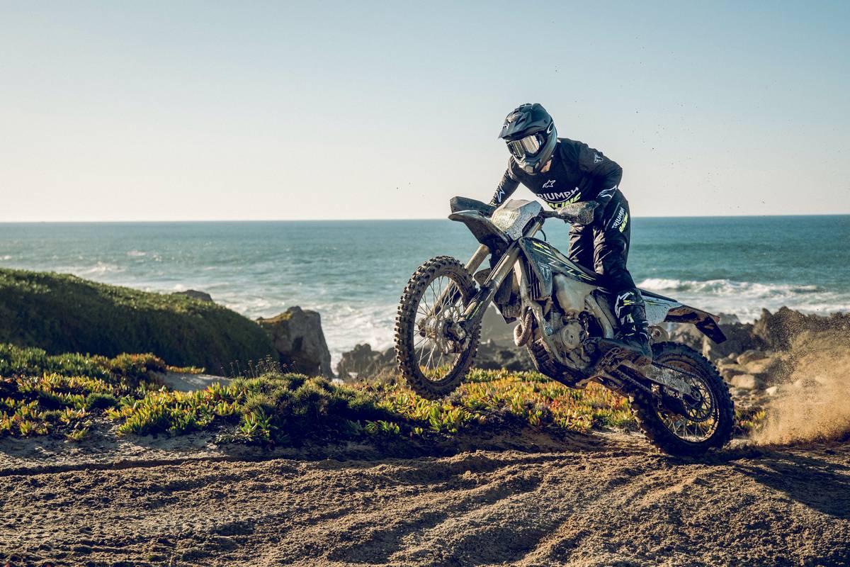 Entre los componentes de alta calidad que equipa la TF 450-E, destacan las llantas de aluminio D.I.D. DirtStar, los neumáticos Michelin Enduro 2, el asiento antideslizante Pyramid, los discos Galfer, las tijas Neken y el manillar Pro taper con puños ODI.