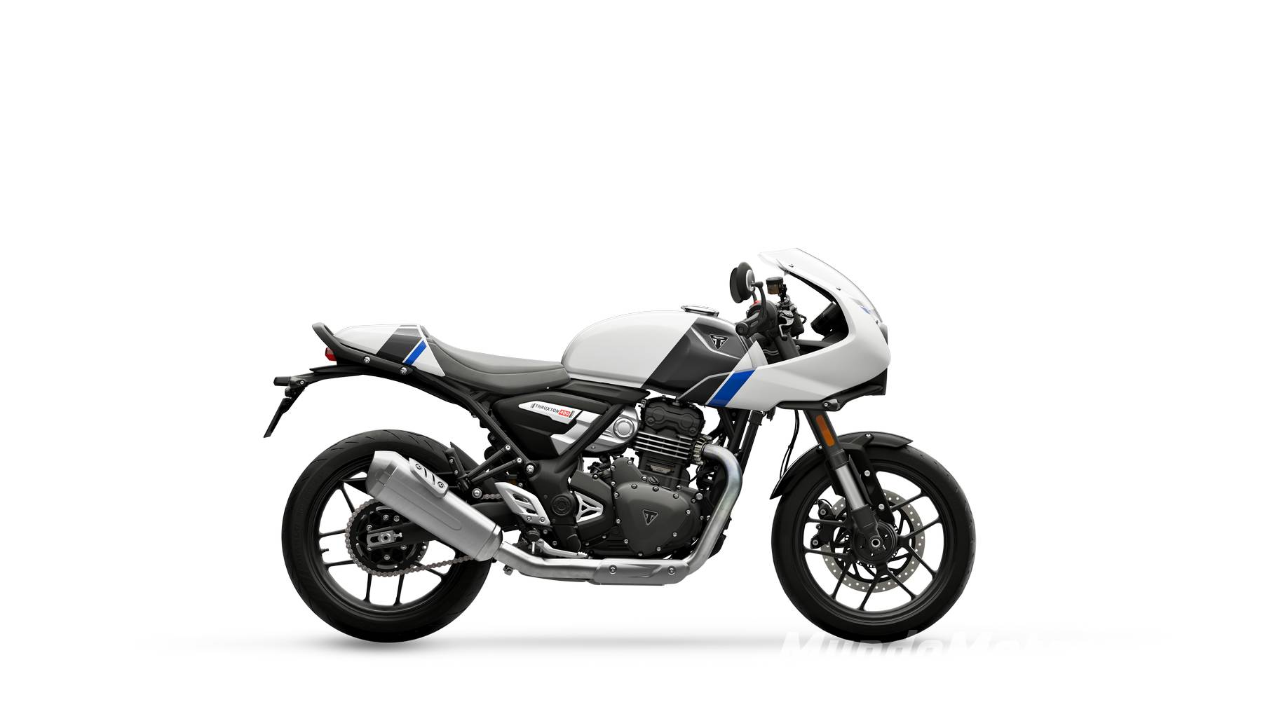 La Thruxton 400 interpreta la silueta clásica con carenado envolvente y faro LED redondo, semi-manillares, retrovisores en los extremos y tapa de colín “bala” a juego. Los paneles laterales en Matt Phantom Black con insignia “Thruxton” en aluminio y el tapón pulido estilo Monza elevan la presentación. Colores: Phantom Black & Aluminium, Carnival Red Gloss & Aluminium Silver, Pearl Metallic White & Storm Grey (con detalles Caribbean Blue) y Metallic Racing Yellow & Aluminium Silver. Conclusión: una café-racer “lista para foto” al salir del concesionario.