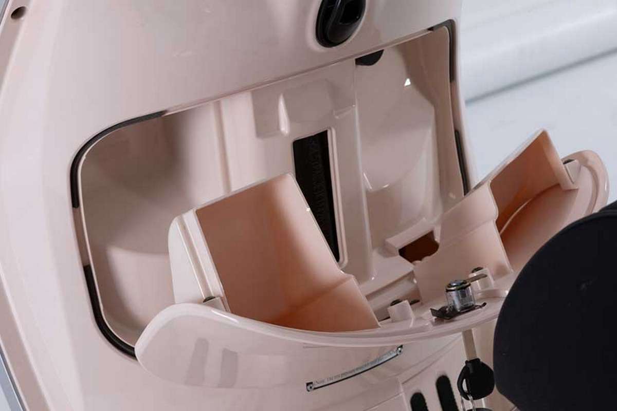 A la altura de las rodillas existe una pequeña guantera. A este compartimento se suma el espacio de debajo del asiento, con capacidad para guardar al menos un casco jet. Además, UM ofrece como accesorios adicionales una pantalla parabrisas y un baúl trasero Shad con soporte.