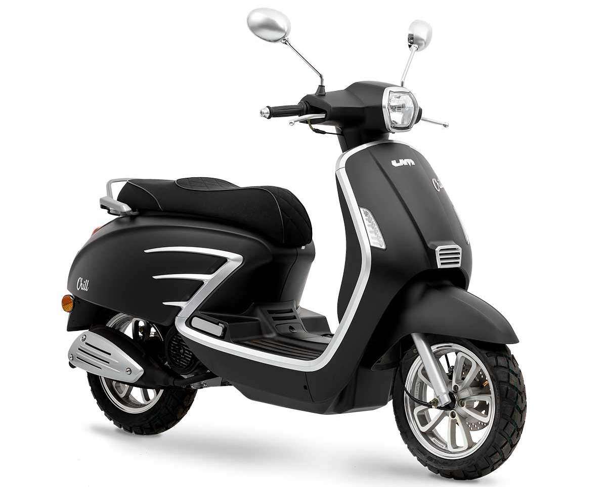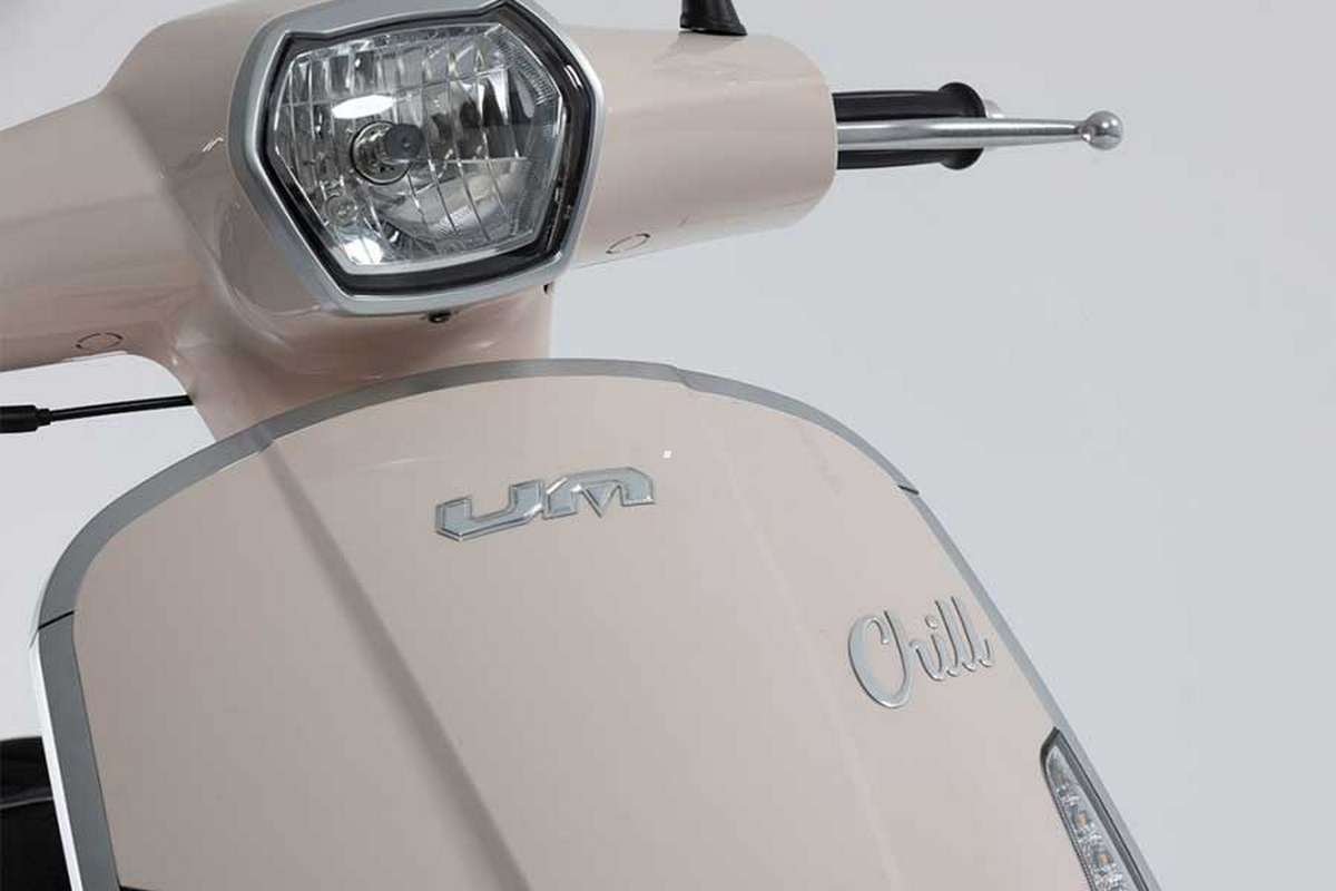 La UM Chill 125 es un scooter tipo Vespa o estilo retro clásico de rueda baja dirigida para conductores con permiso A1 o con tres años de experiencia con el carnet B. Dentro de la variada gama de productos con la que la marca estadounidense llegó a España, la Chill es el scooter de mayor cilindrada de su catálogo. Un modelo que está disponible también como ciclomotor con 49cc.