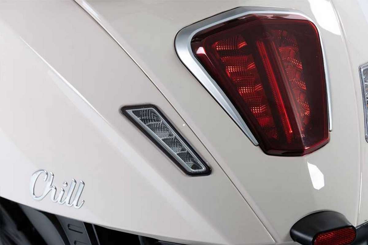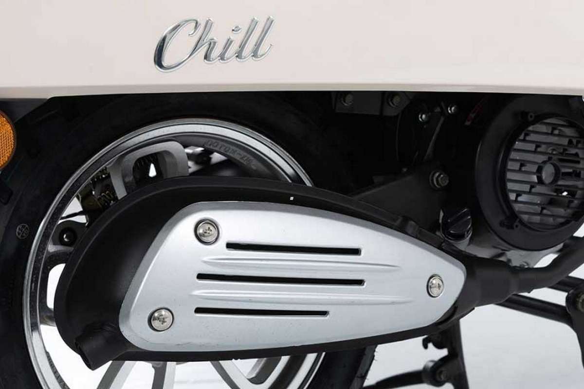 Rueda sobre llantas de 12 pulgadas cubiertas por un neumático 110/70 12 delante y un 120/70 12 detrás. Sobre ellos, la Chill 125 se extiende 1900mm a lo largo por 705mm de ancho. La altura total de es de 1135mm y la distancia entre ejes se fija en los 1335mm. Sus usuarios se sientan sobre un sillón situado a 810mm del suelo para un scooter que pesa 112 kg.