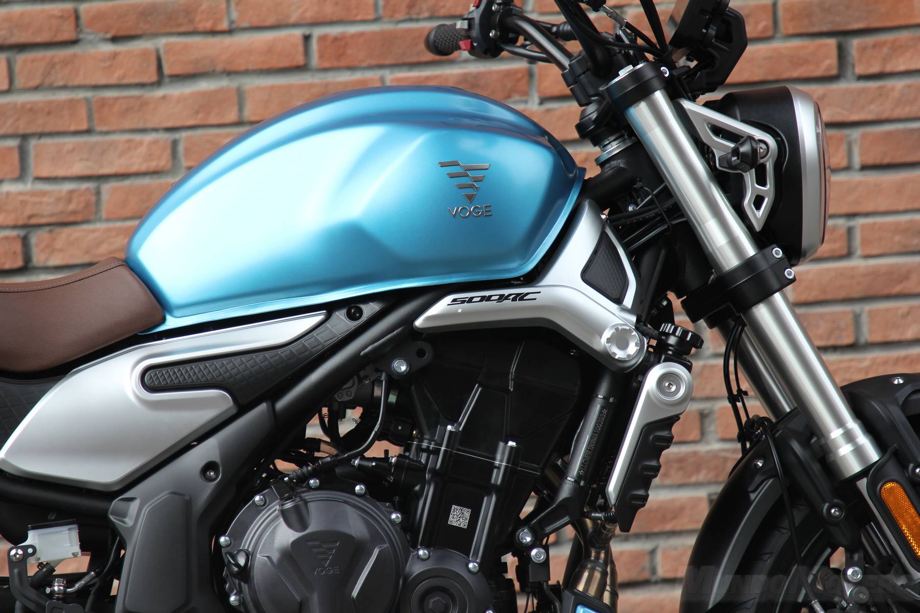 Esta VOGE 500AC llega propulsada por el motor bicilíndrico en línea de 471cc con refrigeración líquida y que entrega una potencia de casi 47CV y que ya equipan modelos como la VOGE 500R, la 500DS o su hermana 500DSX. A nivel de par motor seguimos encontrando cifras elevadas para este tipo de motorización con 44,5 Nm a 7.000 rpm lo que asegura una buena aceleración gracias también a un contenido peso de 198 kg en orden de marcha.