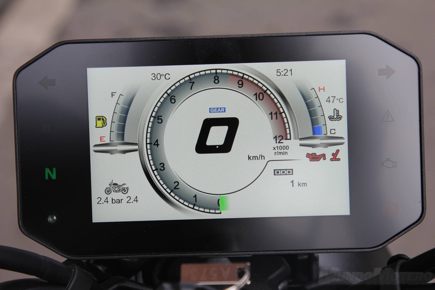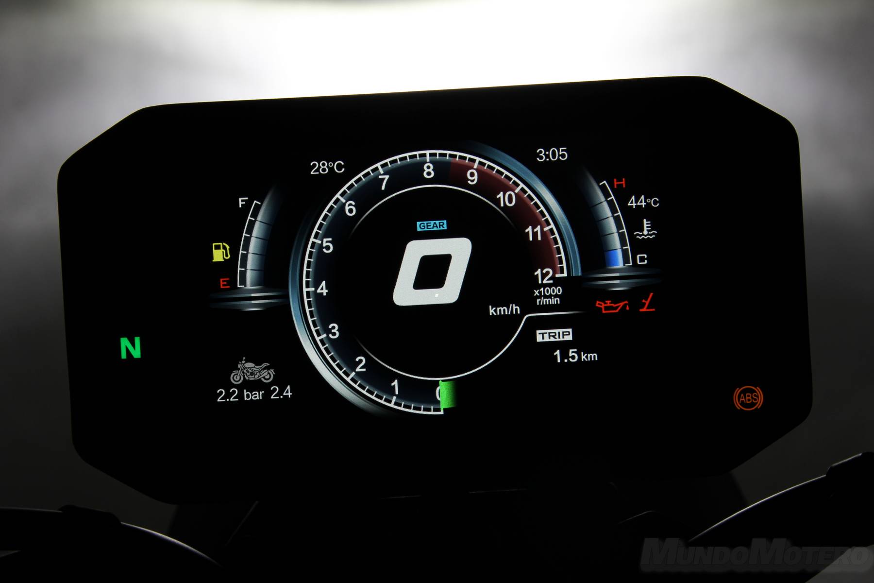 Dentro del equipamiento destaca el sistema de iluminación FULL LED, dotado de luz de posición DRL, el completo cuadro de instrumentación mediante pantalla TFT a color con dos visualizaciones y equipado con sensor crepuscular. Además de la información habitual que podemos encontrar en cualquier otro cuadro de instrumentación nos muestra la presión de los neumáticos y cuenta con conectividad con el teléfono móvil a través de Wifi o Bluetooth. Junto al cuadro dispone de una toma USB para cargar dispositivos móviles.