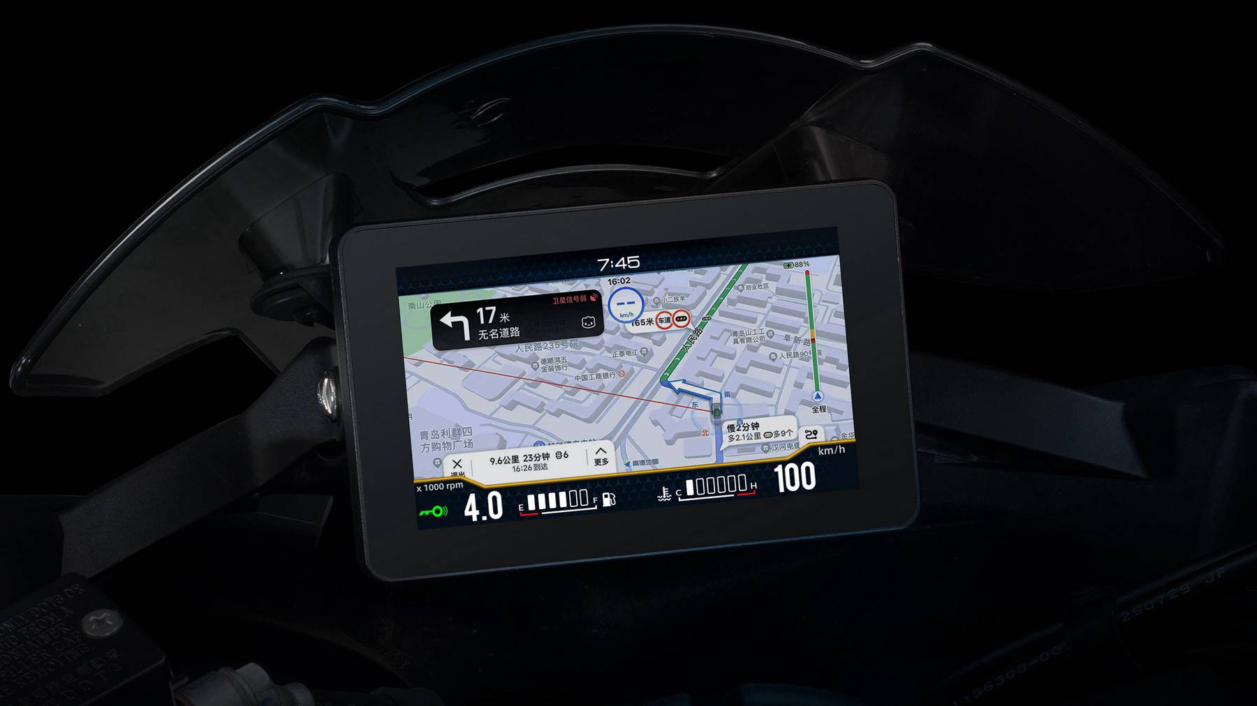 Zontes no se ha guardado nada en el apartado electrónico. De serie encontramos Control de Tracción, instrumentación TFT a color de 5” (alto contraste y pantallas configurables), conectividad avanzada con navegación integrada, función Mirroring con el smartphone y app de gestión del vehículo. La monitorización de presión y temperatura de neumáticos (TPMS) añade seguridad preventiva en tiempo real, mientras que el sistema Keyless de tercera generación centraliza el arranque y el cierre del scooter, además de la apertura del asiento y del depósito.