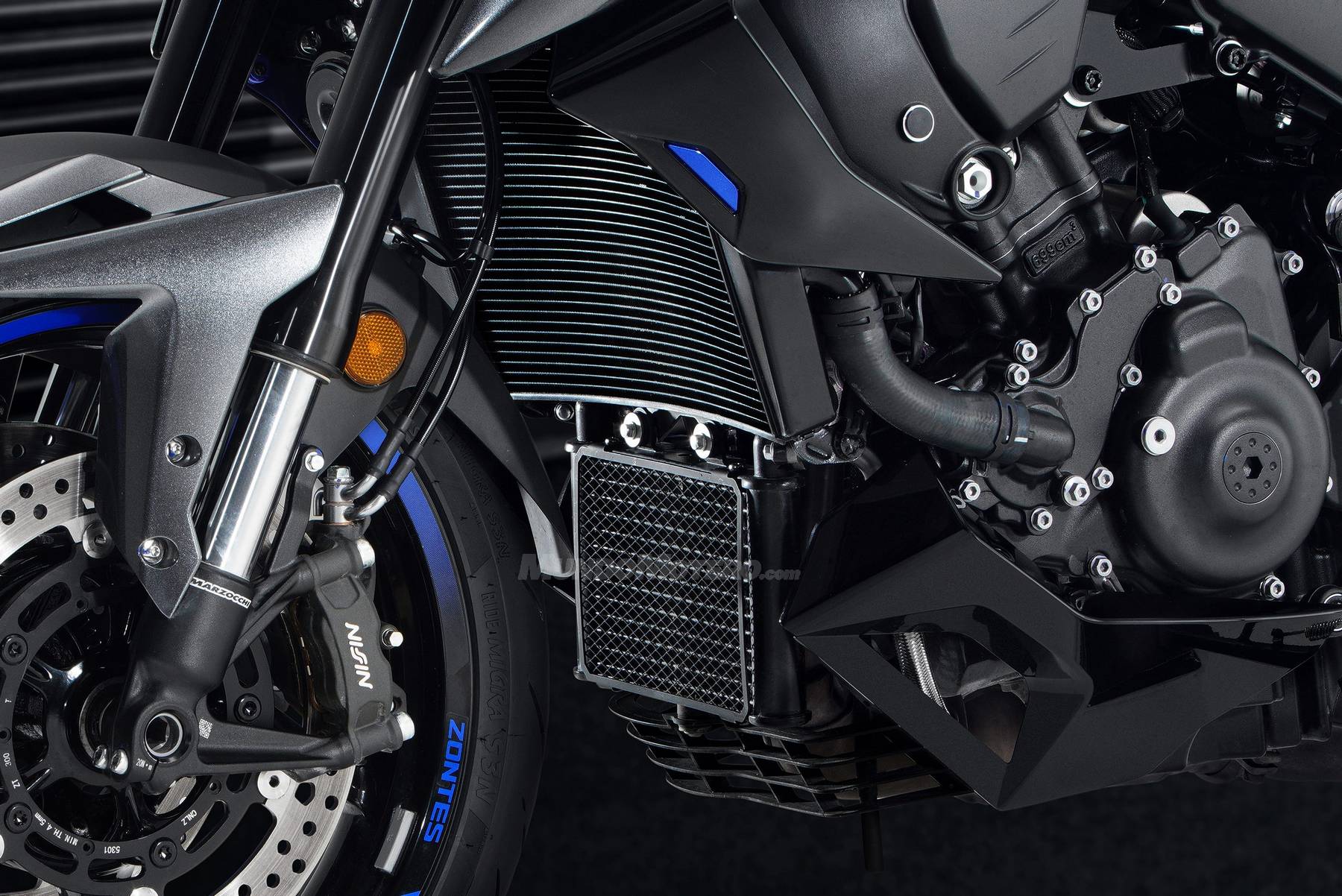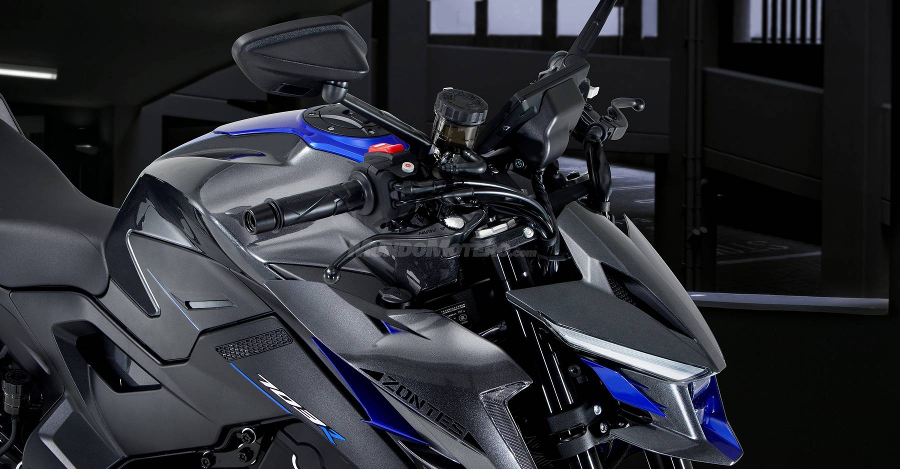 El corazón de esta moto naked deportiva es el tricilíndrico Zontes de 699 cc. Homologa 95 CV de potencia y 75 Nm de par, cifras que sitúan al propulsor en la zona alta de las medias naked, haciéndola apta también para limitarse para el carnet de moto A2. La configuración de tres cilindros se traduce en una entrega elástica y utilizable a cualquier régimen, con suficiente empuje en medios y una estirada que anima a jugar con el gas. El bloque incorpora pistones forjados, tratamiento DLC en elementos de fricción y eje de equilibrado para suavizar vibraciones, además de embrague antirrebote, útil en reducciones fuertes o conducciones más deportivas.
