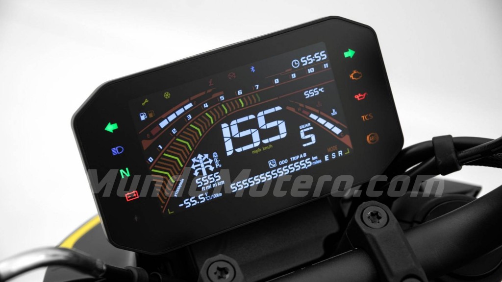 La VOGE R125 S llega como naked deportiva y se diferencia de la 125 R por su “estructura ósea” más robusta, orientada a usuarios de mayor talla. Iluminación full LED y cuadro LCD (blanco sobre negro) con navegación simplificada por flechas. De serie: ABS y TCS.