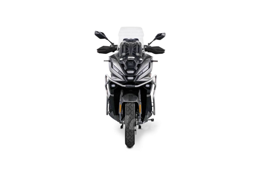 Bajo el carenado, adopta chasis de acero, horquilla invertida y amortiguadores KYB regulables, mientras que la frenada corre a cargo de un sistema mixto J.Juan y Nissin para gobernar 220 kg en seco. Con neumáticos Maxxis semitaqueados (17” delante y 14” detrás), permite alguna incursión en pistas. En ergonomía, silla a 795 mm, manillar ancho y paramanos de serie; además, pedanas adicionales facilitan conducción de pie. En el día a día, suma apertura keyless, cofre para dos cascos y guantera con cerradura. Un scooter con ganas de aventura, sin olvidar los básicos de uso cotidiano.