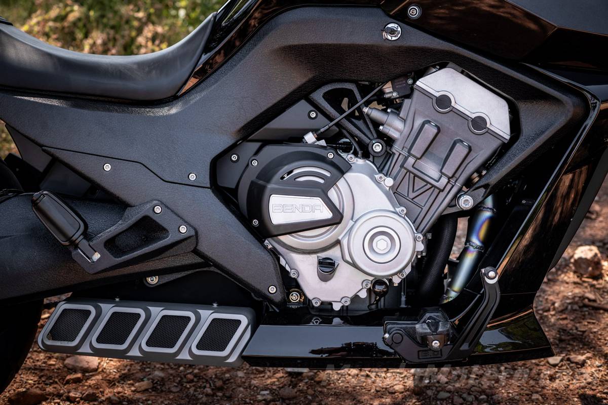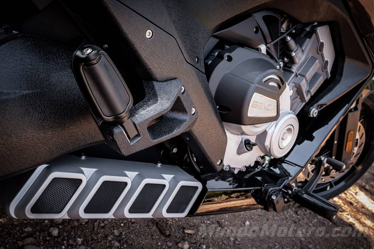 Si esta moto es diferente en muchos aspectos en la motorización, también lo es. Lo habitual en este segmento de las custom cruiser es que nos encontremos el habitual motor bicilíndrico en V que da un sonido ronco y, sin embargo, Benda ha optado por un motor 4 línea de casi 700 cc.