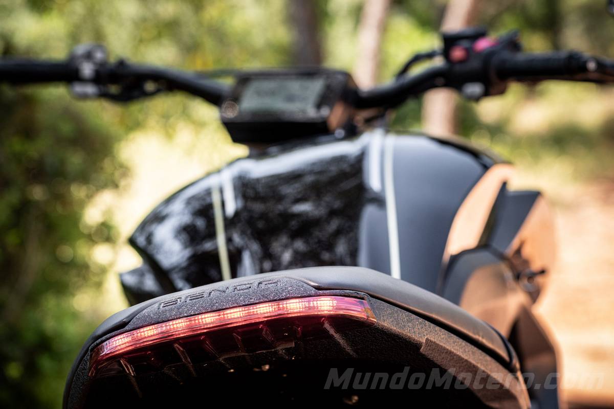 A primera vista, si hay un aspecto que llama la atención de este modelo es su diseño y obviamente es uno de sus aspectos fundamentales. Desde el frontal hasta el más que generoso neumático trasero de nada menos que 310 milímetros. Durante esta prueba hemos tenido que circular por ciudad, por carretera, por autovía y es de esas motos que las llaman «gira cabezas«.