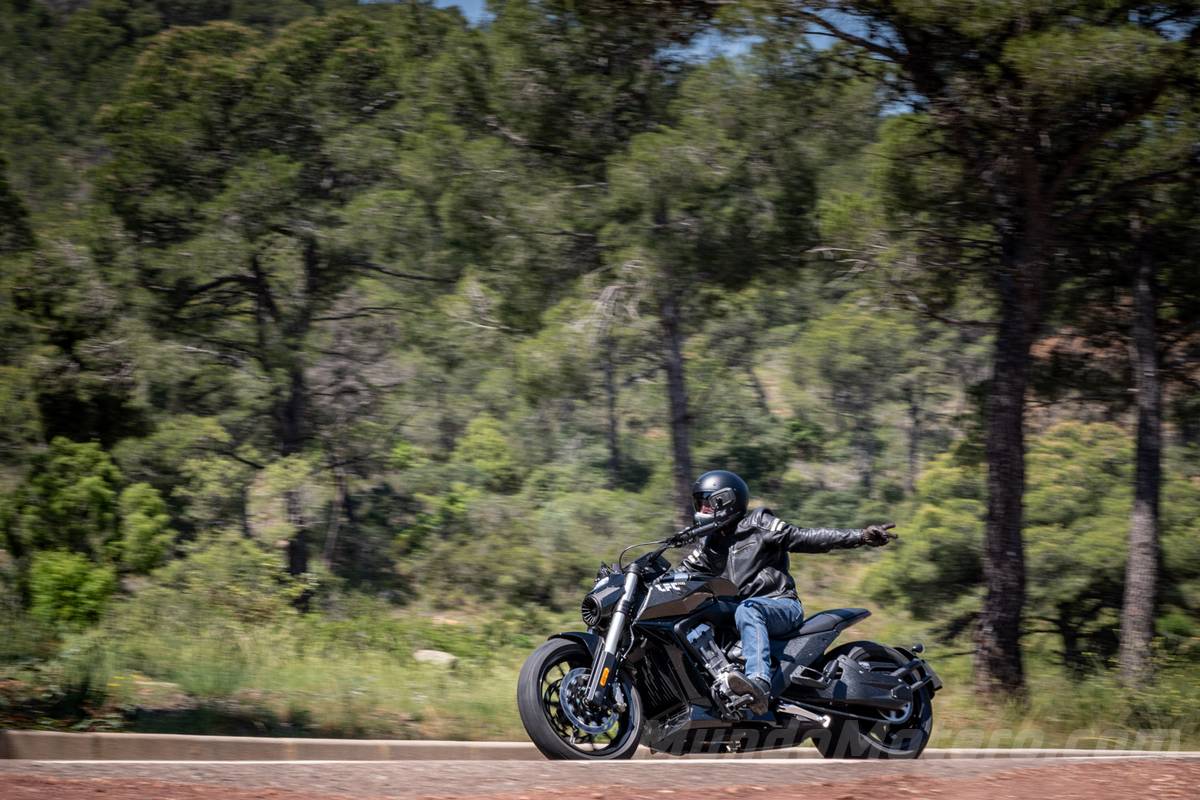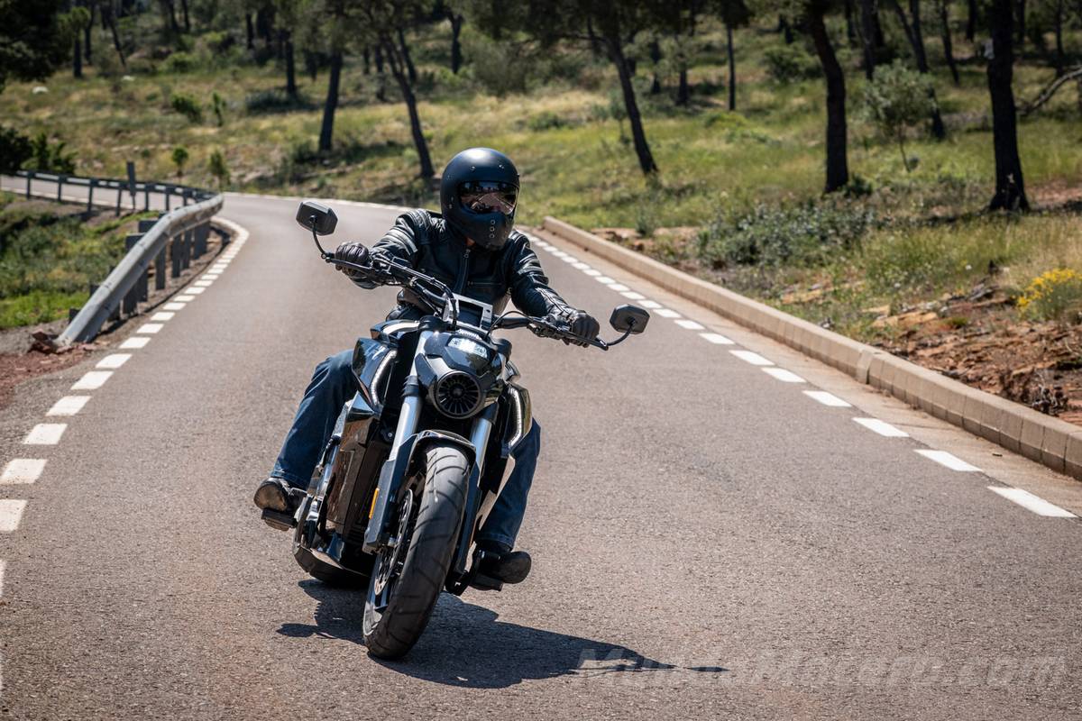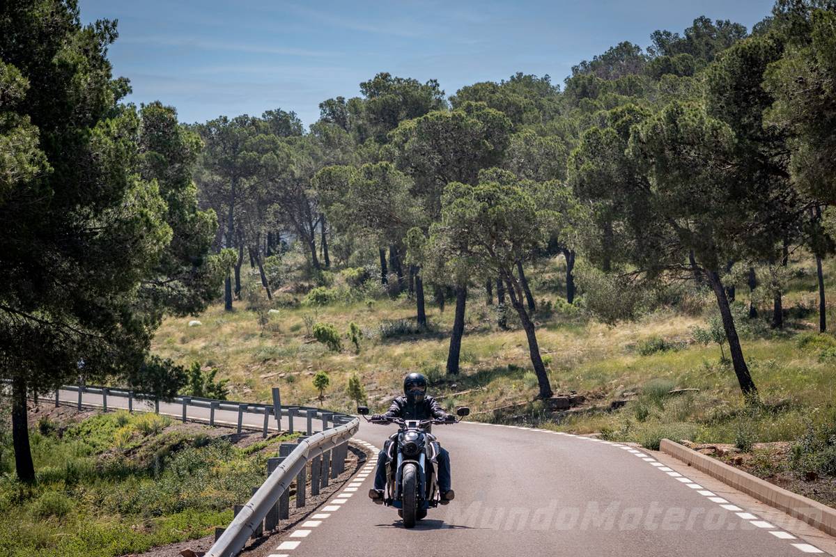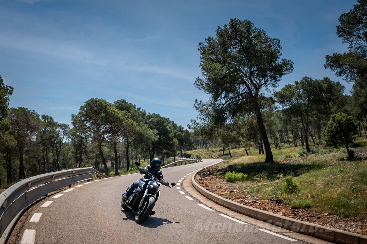 Cuando nos adentramos en zonas reviradas es donde menos a gusto se siente y tienes que trabajar mucho encima de la moto para meterla dentro de la curva. A la salida ofrece una estabilidad enorme, obviamente con ese neumático trasero de 310 mm. Pero sobre todo mientras más estrecha y ratonera es la carretera es donde menos a gusto se siente y donde más hace trabajar al piloto