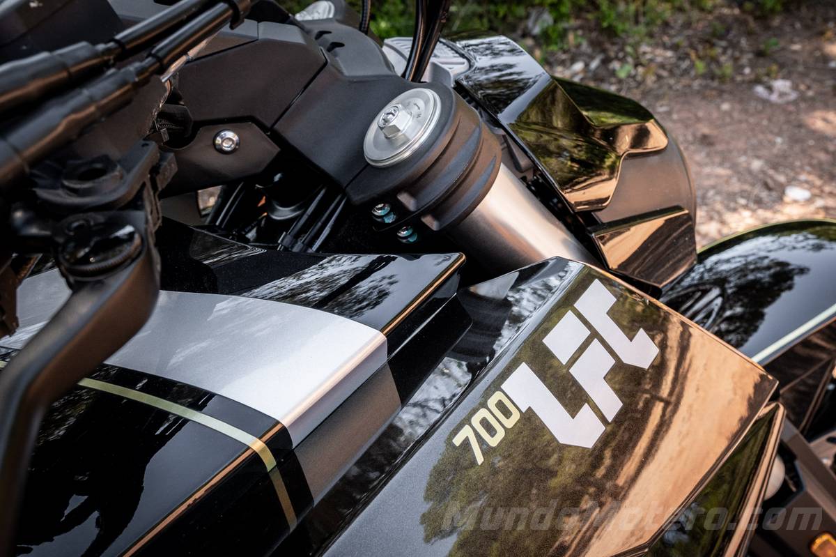 La ergonomía de esta LFC 700 es la habitual en este segmento de las custom cruiser, palancas adelantadas, un manillar bastante ancho y obviamente protección aerodinámica nula. Se nota a partir de cierta velocidad, que es cuando ya empezamos a notar ese efecto vela o paracaídas debido a la posición de conducción.
