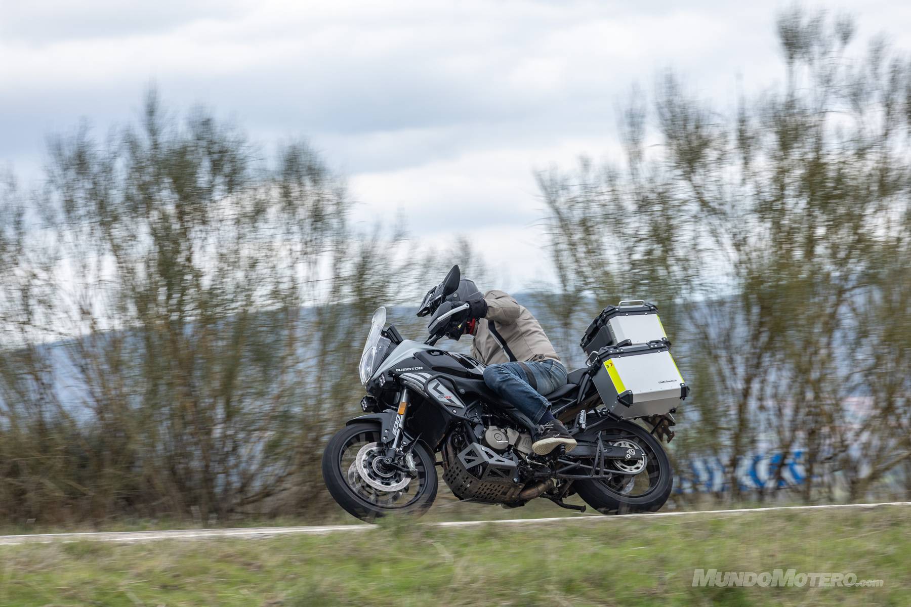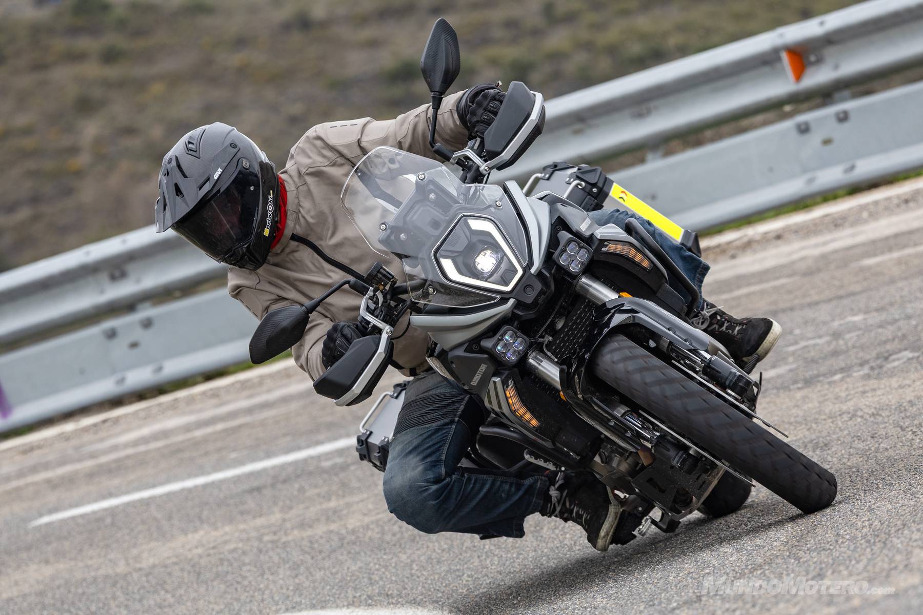 Divertida, divertidísima, es el titular para este apartado. Los más quemados más vale que no se dejen embaucar por la provocación del escape, y por la extralimitada confianza que ofrece la descomunal frenada del conjunto Brembo; de lo contrario se sentirán atrapados por una irresistible tentación de ir más rápido en cada curva. En ese caso, empezarán a arrastrar el caballete por ambos lados y si insistimos, las estriberas y eso que no van ancladas precisamente bajas, para tratarse de una trail.