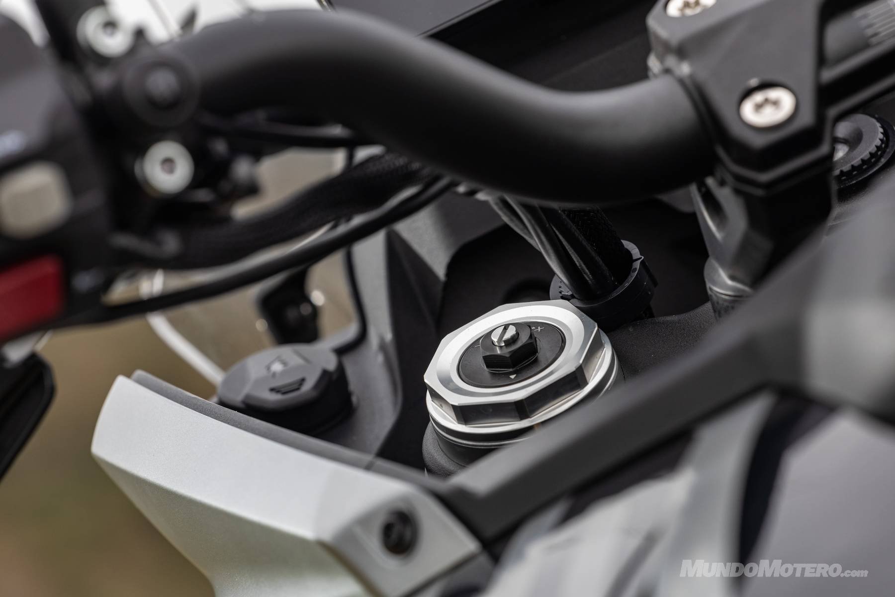 Las suspensiones firmadas por Marzocchi ofrecen un tacto touring, podríamos decir, pero que no se muestra “blando” cuando avivamos el ritmo en nuestras rutas más retorcidas. Por otra parte, su capacidad trail, aunque discreta, y su posición de control total la presentan como una rival muy difícil de batir en esas carreteras rotas, perdidas en la montaña.