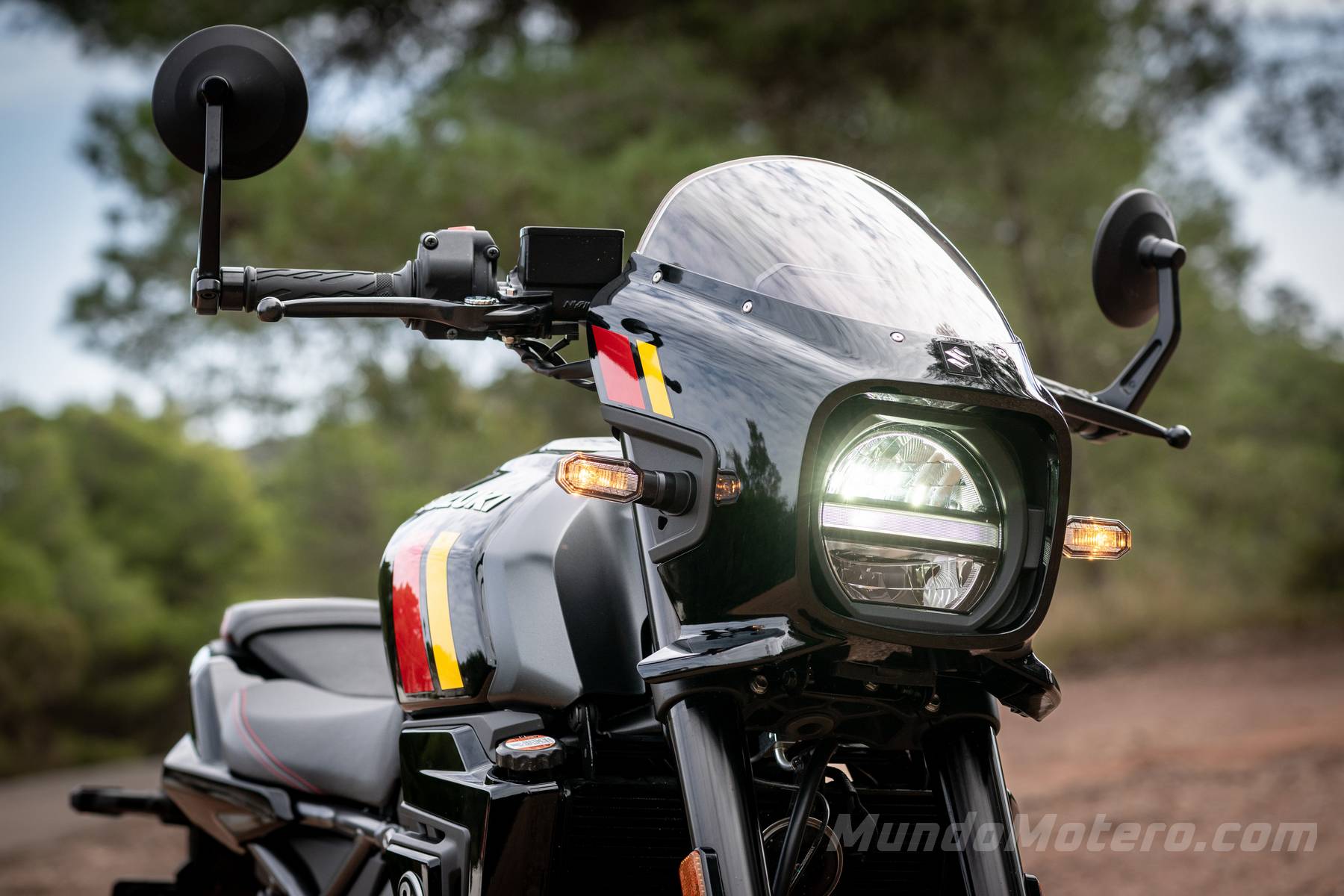 Hay que aclarar algo importante de entrada: existen dos versiones. La “T” a secas, que lleva el faro libre sin carenado, y esta versión TT, que es la que llega a España y se distingue por este semicarenado frontal que le da tanta personalidad. No es solo estética; Suzuki ha querido crear una moto que entre por los ojos, pero que mantenga la usabilidad de sus hermanas modernas.